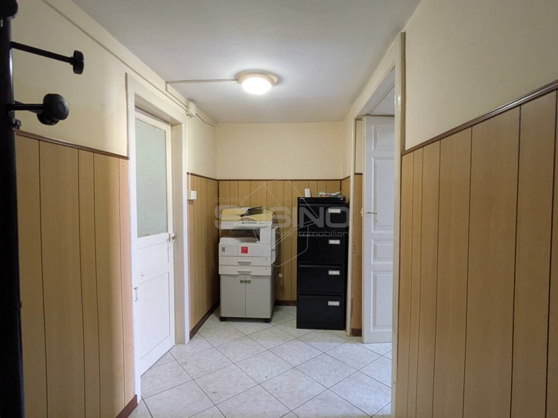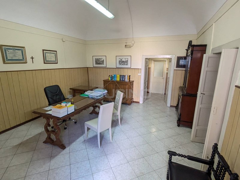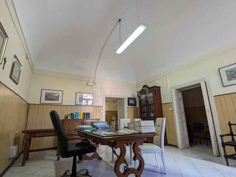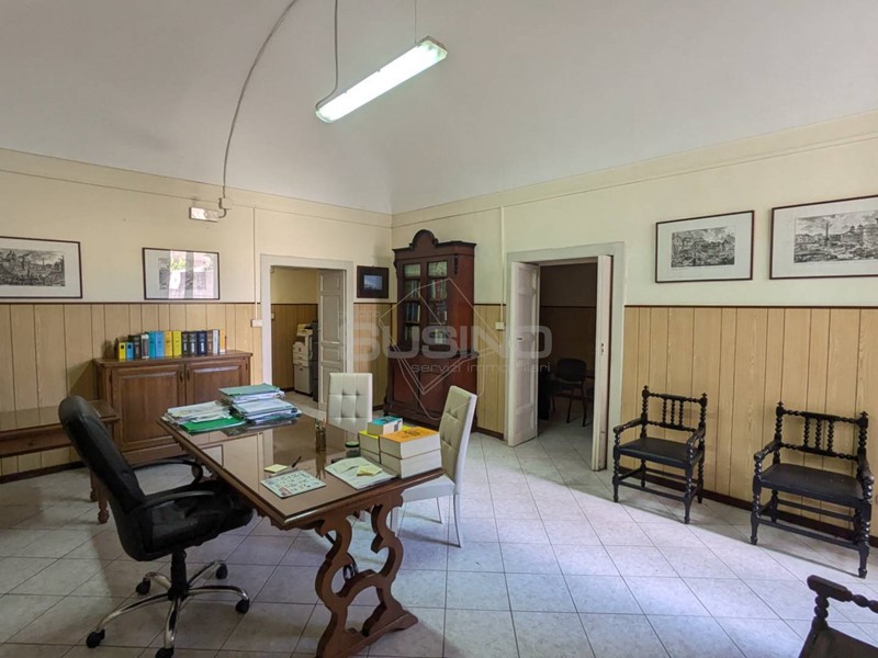 Internamente è così distribuito; sala attesa, ampia stanza per ricevimento clienti, zona riservata ai praticanti, camere uso archivio, bagno, cortile di pertinenza.