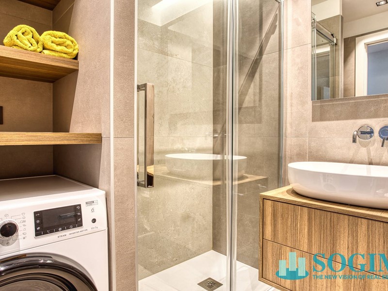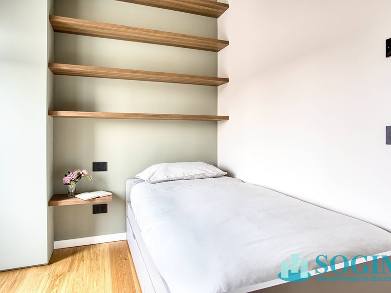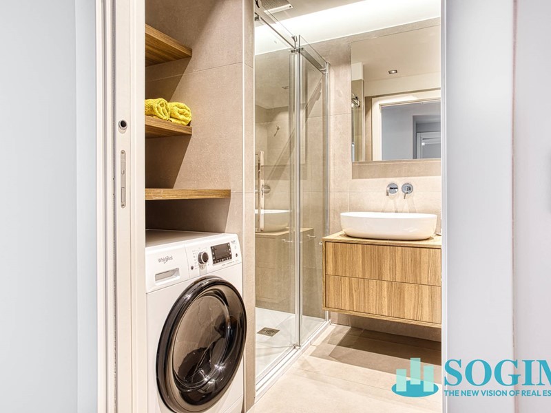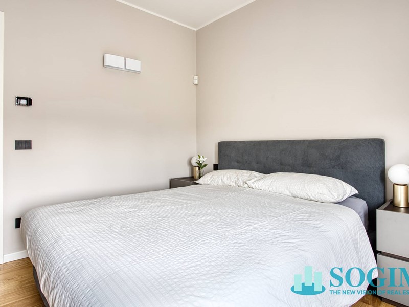 La zona notte è composta da: camera da letto matrimoniale con letto contenitore, seconda camera con letto singolo, bagno padronale con box doccia e lavasciuga.