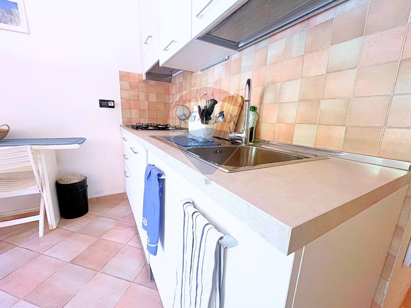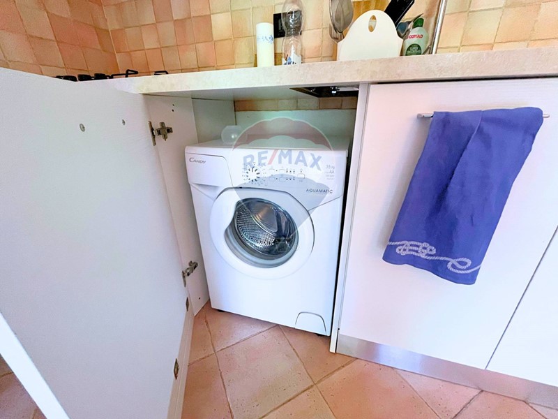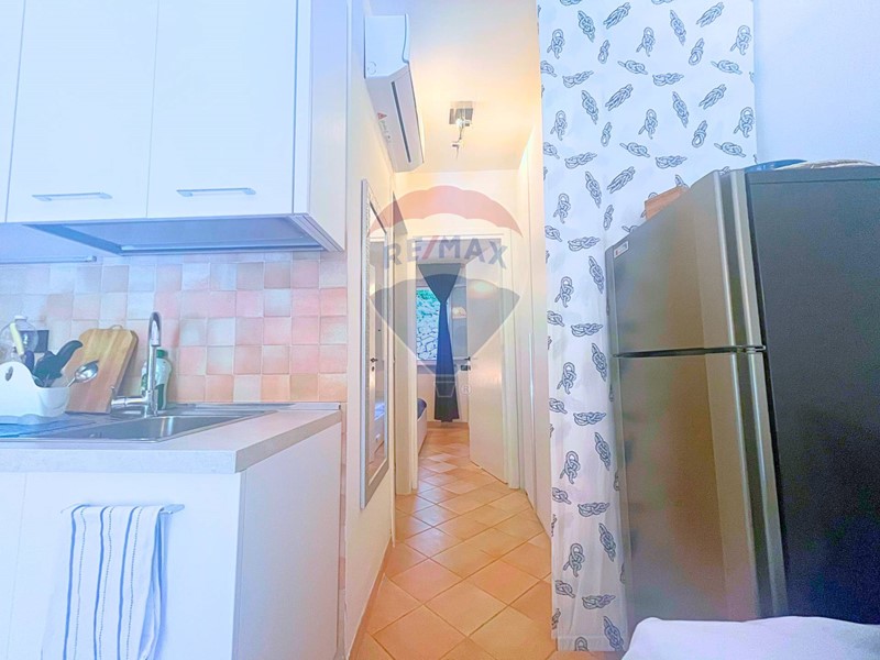 Allinterno, la zona giorno è accogliente e ben organizzata: cucina attrezzata con lavatrice, tavolo con sedie, divano letto e pavimento in cotto chiaro. La mobilia è di ottima qualità e lo stato di manutenzione generale è eccellente. Lappartamento gode di unILLUMINAZIONE NATURALE OTTIMALE nelle ore pomeridiane, rimanendo fresco per buona parte della giornata. A completare il comfort abitativo, uno split con pompa di calore caldo/freddo, infissi in legno con doppio vetro e persiane nuove in alluminio, per un perfetto isolamento termico e acustico.