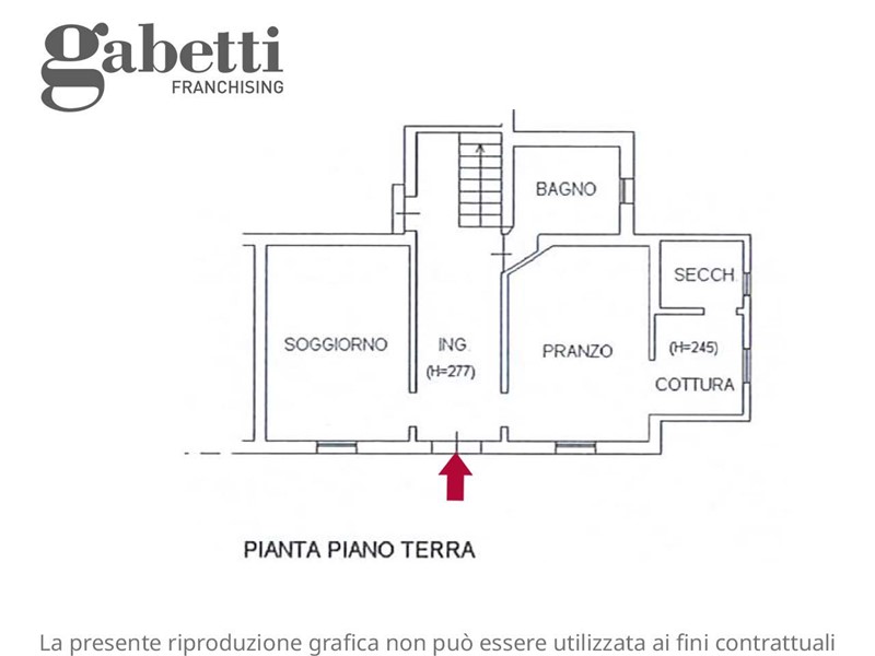 Il piano terra si compone di una zona pranzo con angolo cottura, un soggiorno indipendente ed un bagno. Troviamo inoltre un passaggio che conduce all'ampia cantina di 40mq.