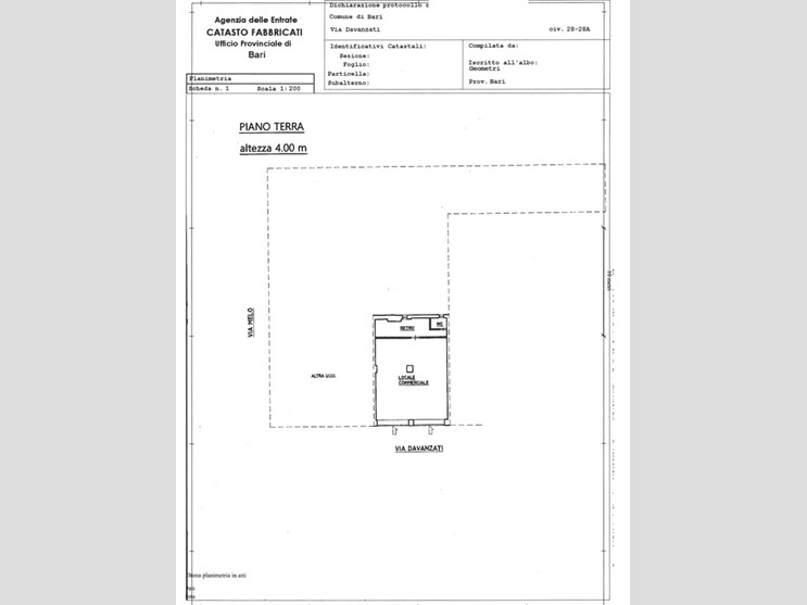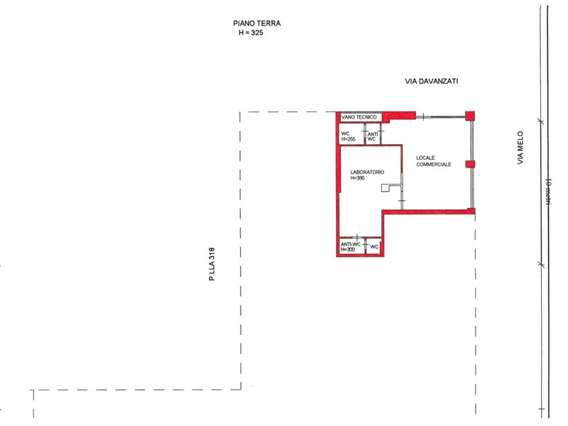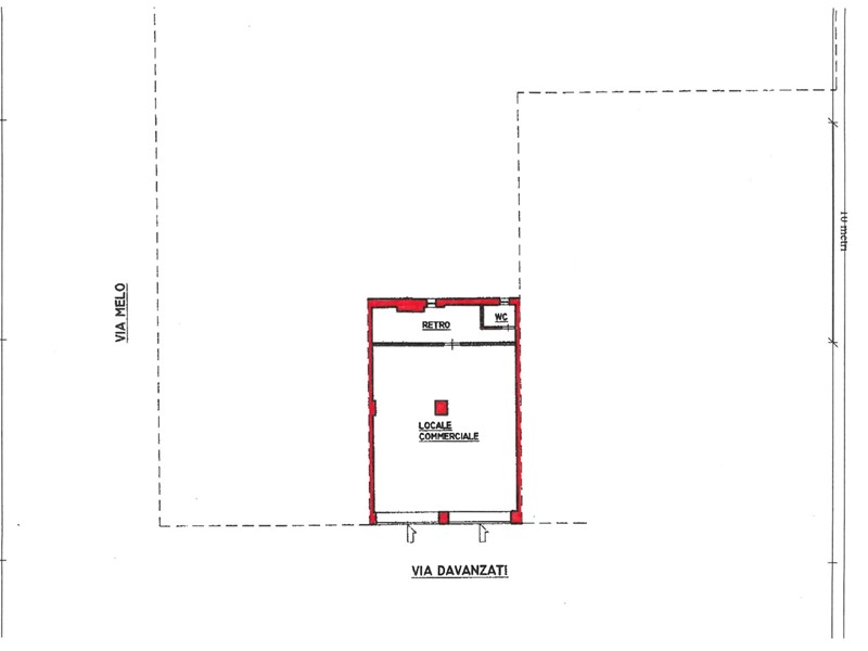 Sono in vendita in blocco tre locali che costituiscono l'angolo tra Via Melo e Via Davanzati. La superficie totale è mq. 145 ca., con sei vetrine alla strada, cinque servizi. Sono tutti in categoria C/1 e tutti a reddito.
