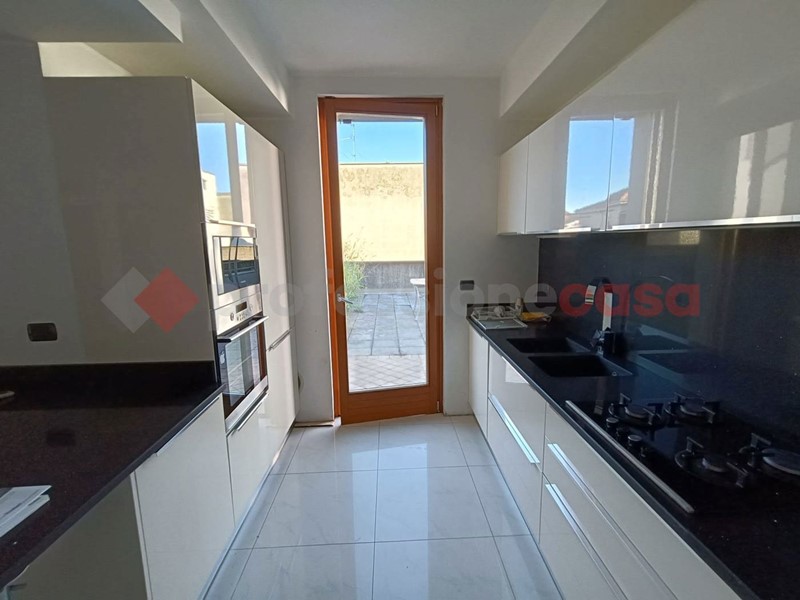 L'appartamento si distingue per una moderna zona giorno con luminoso open space, perfetta per la vita quotidiana e per intrattenere gli ospiti. Le ampie finestre in ogni stanza inondano gli ambienti di luce naturale, mentre il pavimento in piastrelle chiare accentua l'impressione di spaziosità e pulizia. La cucina, contemporanea ed elegante, è dotata di mobili bianchi lucidi e un piano di lavoro in granito scuro che garantiscono sia stile che praticità.