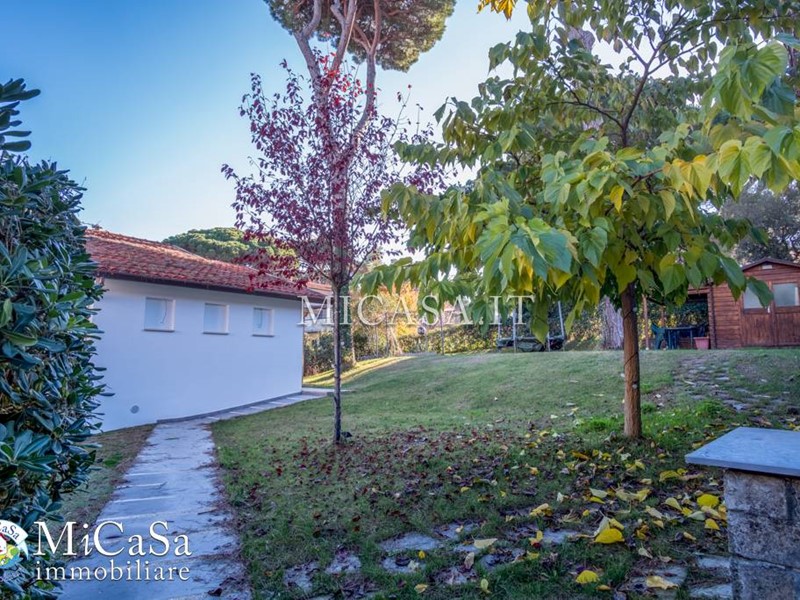 Immerso nella pineta proponiamo splendido appartamento completamente ristrutturato posto al piano terra con giardino di circa 400 mq e accesso indipendente.
