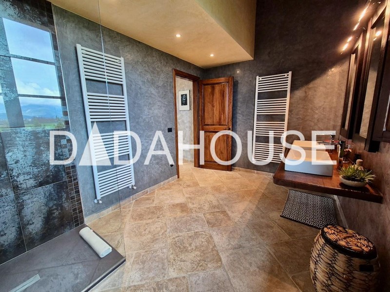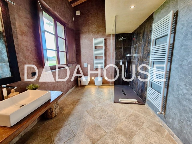 CASCINA: Splendido immobile in perfette condizioni circondato sui quattro lati da circa 10.000 mq di giardino in classe energetica è "A 4". Si compone al piano terra da ampio living - open space soggiorno, cucina, sala da pranzo e zona relax con camino, bagno; al piano primo con accesso tramite scala interna da disimpegno notte, una camera matrimoniale con soppalco e bagno privato con accesso a due locali sottotetto ad uso ripostiglio, una camera matrimoniale con bagno privato e una suite padronale composta da camera con soppalco, cabina armadi e bagno. Sempre al piano terra, con ingresso sia dall'interno che dall'esterno, è presente un piccolo appartamento bi-locale multiuso per ospiti e/o personale di servizio. Completa la proprietà un locale tecnico posto al piano terra con accesso dall'esterno. Nel giardino è presente un laghetto con fontana a cascata e lo scavo per la piscina (da finire di completare).