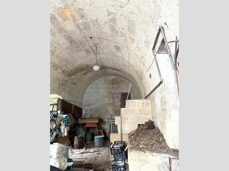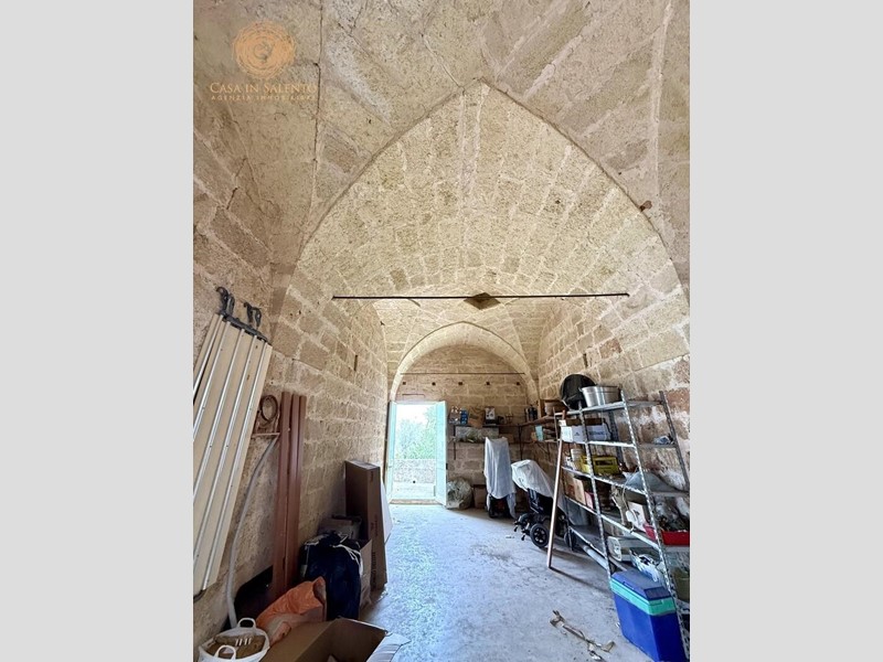 Il giardino, di circa 650 mq, offre uno spazio privato che circonda buona parte della casa. Al suo interno un grande albero dei rosari, piante mediterranee, vialetti e muri di confine in pietra locale, angoli ombrosi ideali per il relax, magari creando con delle pergole un’area esterna attrezzata. A completare la proprietà un garage, fabbricato indipendente ma comunicante sia con il giardino e sia con l'interno della dimora, con un’ampia volta a botte e pietra faccia vista. All’interno del giardino un vecchio deposito con volta a stella (vecchia stalla) e due grandi vani unificati (a faccia vista) con volte a stella al primo piano, utilizzabili come dependance. Al piano seminterrato due ampie cantine separate con volte a stella.
