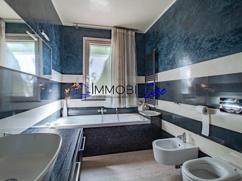 Un disimpegno elegante conduce alla camera da letto padronale, un vero e proprio rifugio privato dotato di cabina armadio e bagno en suite con finestra e vasca, ideale per momenti di relax. A completare il piano terra, una stanza studio/guardaroba versatile e un locale tecnico/lavanderia, pratico e funzionale.