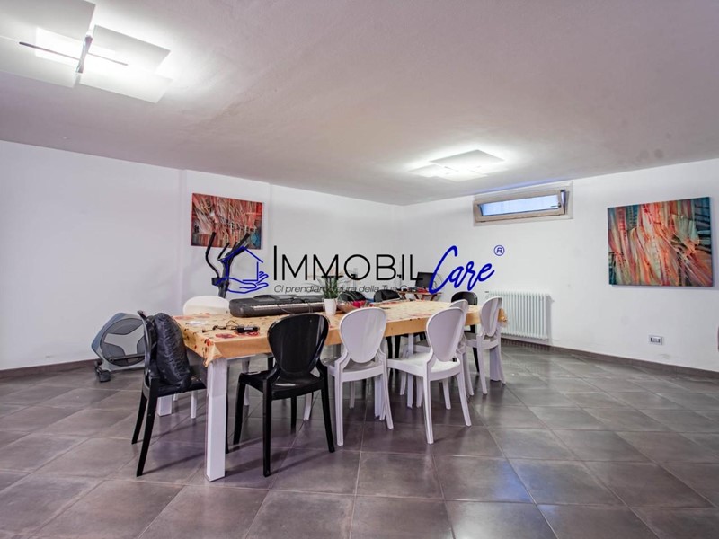 Il piano seminterrato accoglie una taverna spaziosa e luminosa, grazie alle finestre apribili che portano luce naturale. È uno spazio pensato per la convivialità: una grande area living con divano, un ampio tavolo per ospitare amici e familiari, una seconda zona lavanderia e un comodo bagno di servizio.