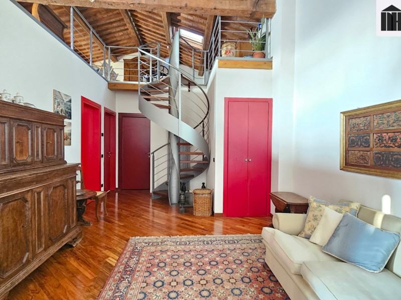 Una raffinata scala interna conduce alla mansarda, uno spazio versatile perfetto come zona relax, studio o ulteriore area living.