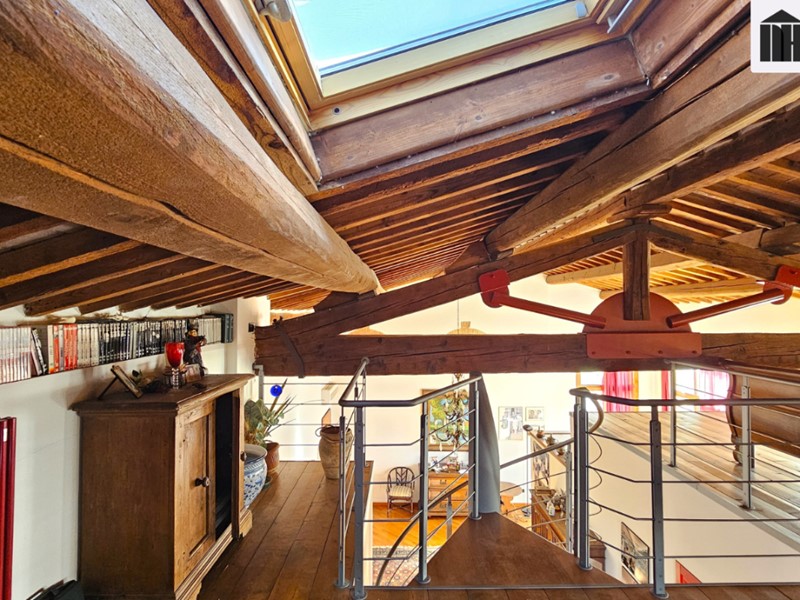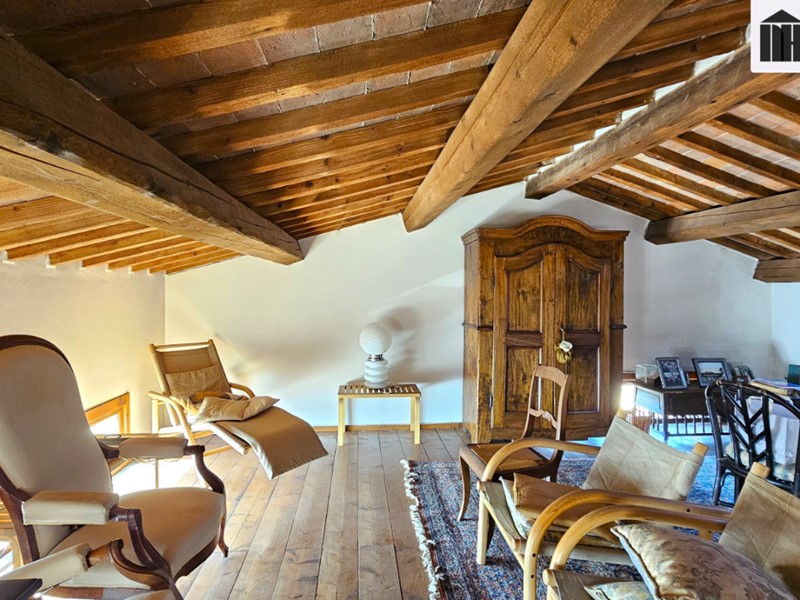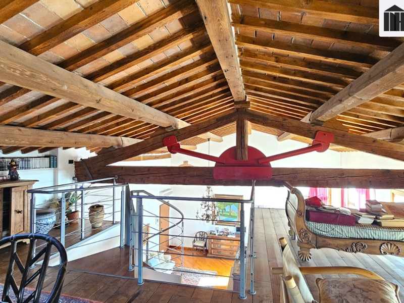 L’immobile si distingue per le sue travi a vista e gli ampi spazi luminosi.