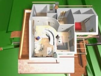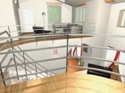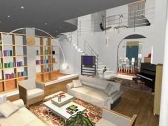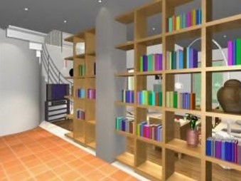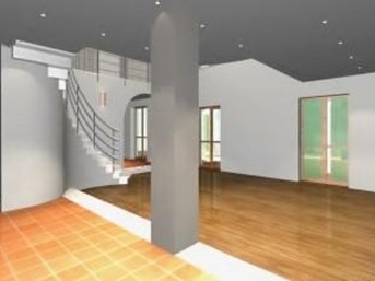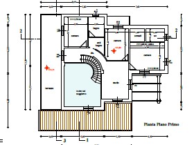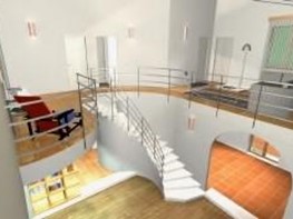 _Camera matrimoniale con bagno e guardaroba, due camere singole, bagno e studio aperto sul soggiorno al piano primo (circa 97 mq) – vuoto sul soggiorno di circa 29 mq.