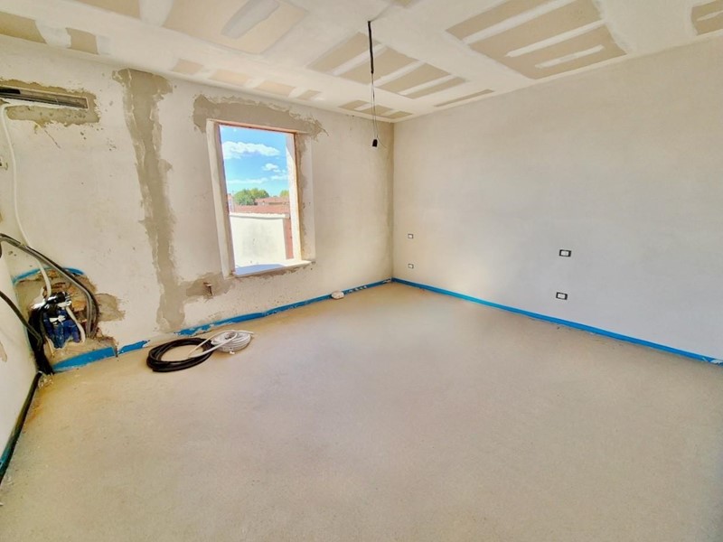 infissi in vetro-camera a norma acustica e termica, cappotto termico, tetto coibentato, climatizzatori, riscaldamento a pavimento con pompa di calore di ultima generazione alimentata ad energia elettrica, impianto videocitofono, solai con tappeto isolante acustico, pareti divisorie interne con requisiti acustici e termici, pavimenti in gress di alta qualità, impianto fotovoltaico di 3/Kwh con accumulatore da 5/Kwh, autoclave, predisposizione per addolcitore e molto altro. Possibilità di personalizzare gli ambienti. Nessuna spesa condominiale.
