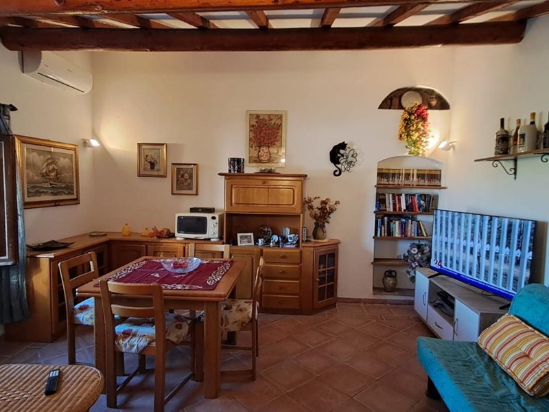 Cecina, frazione Collemezzano: in contesto di campagna, inserito in fabbricato vicino ad altre unità, vendesi appartamento con ingresso indipendente, posto al piano primo. Si accede da scala esterna, all'entrata troviamo la cucina in muratura, inserita nel contesto della zona pranzo, con camino, si prosegue con un grande soggiorno (nel caso di abitazione ad uso di casa al mare, lo spazio permette di ubicare due divani letto), su un livello rialzato da alcuni scalini, abbiamo il disimpegno per entrare in bagno e nella camera matrimoniale. Al piano terreno, nel vano sottoscala è stata realizzata la zona lavanderia. La proprietà è completata da un locale ripostiglio di circa dieci mq e dal posto auto. immobile in buono stato di manutenzione, ideale per uso di prima o seconda casa, oppure per investimento. Per maggiori informazioni contattare: Massimo 335 6111829 - Debora 339 4515644.