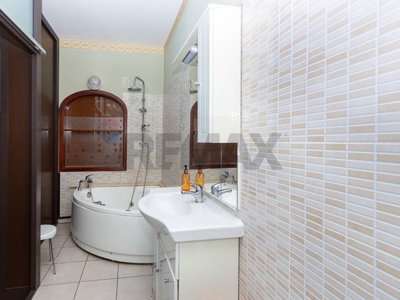 L'appartamento si compone di un ampio e luminoso soggiorno, una cucina abitabile, due spaziose camere da letto e due bagni completi di tutti i sanitari.