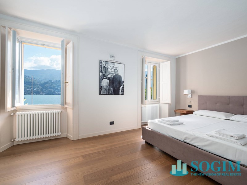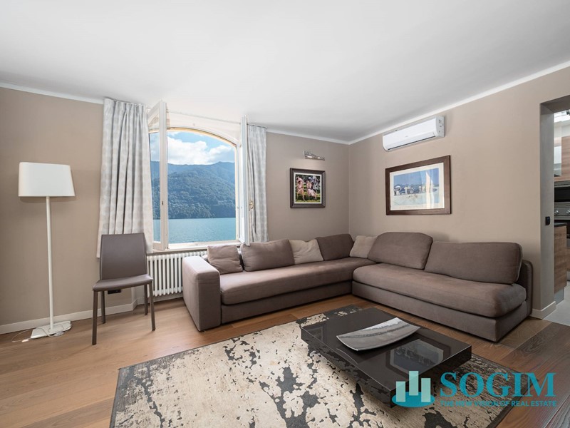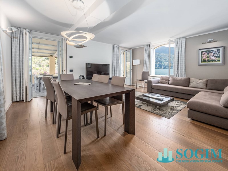 Questa esclusiva proprietà, totalmente ristrutturata con ottime finiture, gode di un'esposizione su tre lati e di una splendida posizione fronte lago che si lascia apprezzare da ogni angolo della casa .