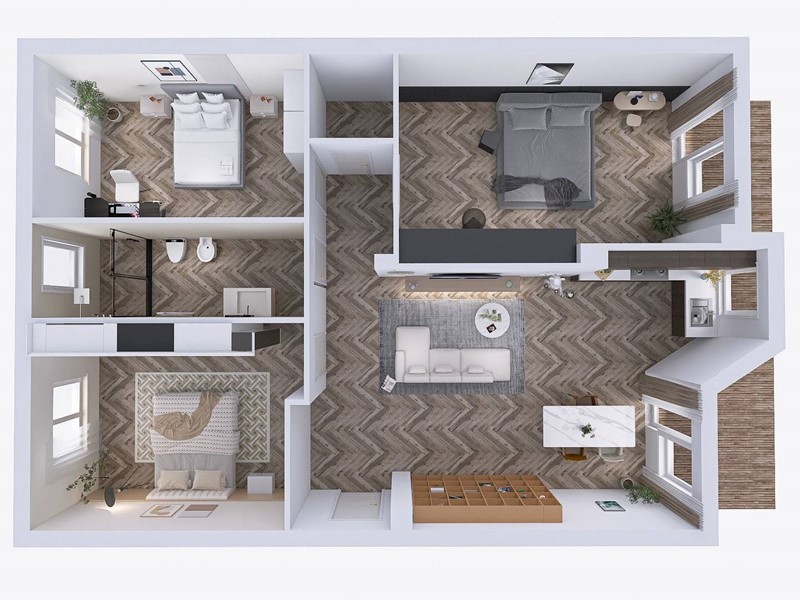 La pianta regolare dellimmobile lo rende facilmente personalizzabile, come da render allegato in foto è possibile adattare gli ambienti a uno stile più moderno e funzionale.