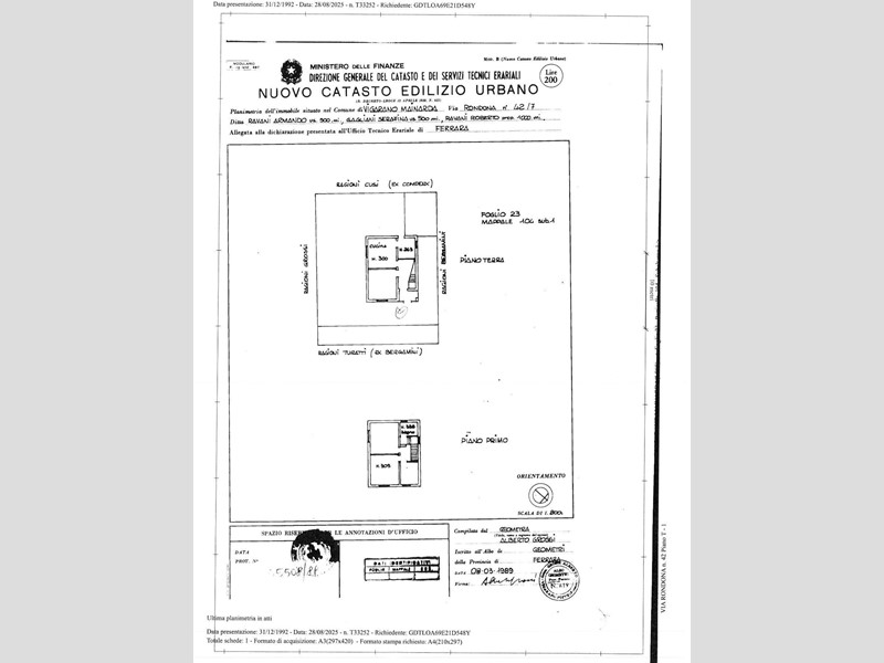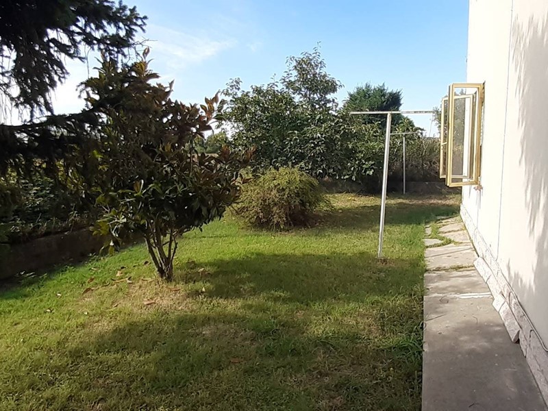 Vigarano Pieve libera casa indipendente su 4 lati diposta su 2 pianI così distribuita : P.T.: ingresso, soggiorno, cucina abitabile, retrocucina (possibilità di realizzare un bagno) ; P1: 2 camere da letto matrimoniali, 1 singola o studio, bagno. Garage e cantina. Risc. aut. Giardino esclusivo di oltre 200 mq.