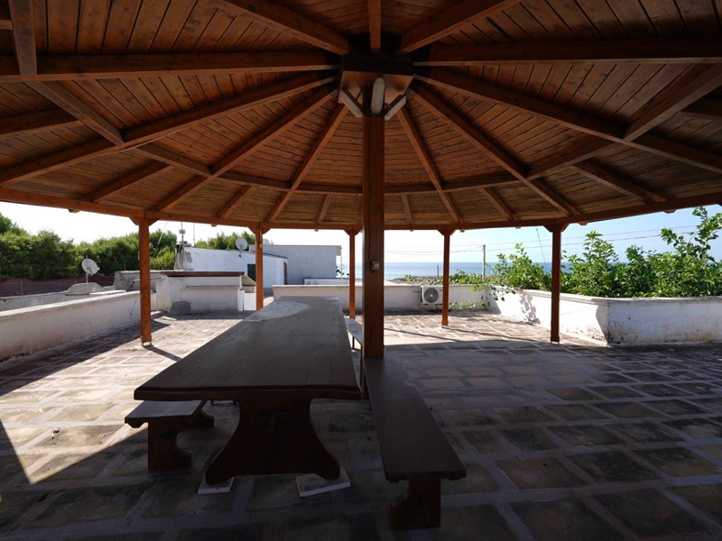 Sulla litoranea salentina, di fronte al mare, presso la località marina di Pulsano proponiamo in vendita una villa composta da due abitazioni indipendenti, ideale per investimento o per famiglie numerose che vogliono godersi le giornate estive in compagnia. La villa si trova a pochi minuti a piedi dalle bellissime spiagge di Lido Silvana e Fata Morgana Lido (meno di 200 mt.). Ad accogliervi un meraviglioso patio/giardino completamente ombreggiato dal fogliame di un albero sempre verde, l'appartamento del piano rialzato presenta una veranda coperta, un ampio soggiorno con camino, cucinino e zona pranzo oltre a due ampie camere da letto, bagno e ripostiglio oltre ad un patio interno. L'appartamento al seminterrato è composto da una zona living open space con cucinino, tre camere da letto e bagno.