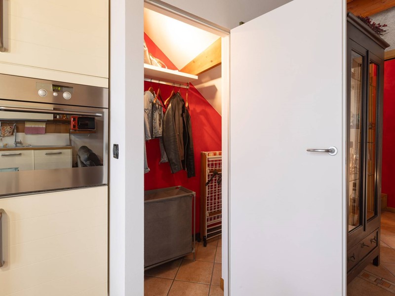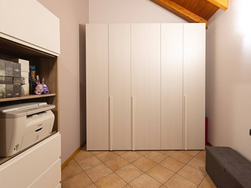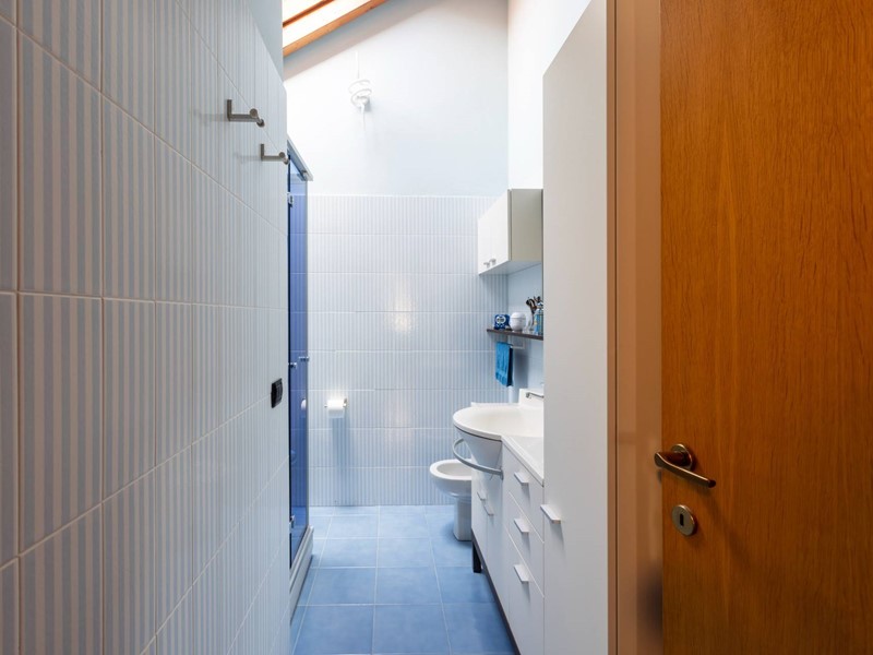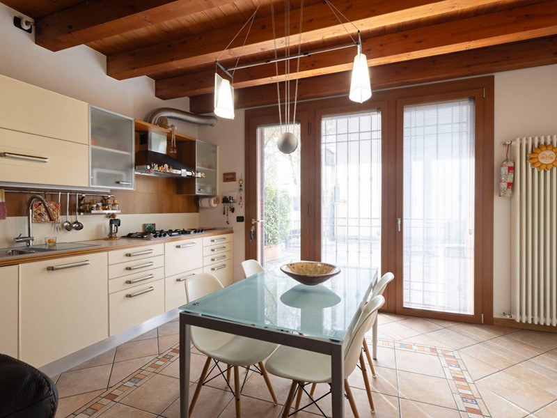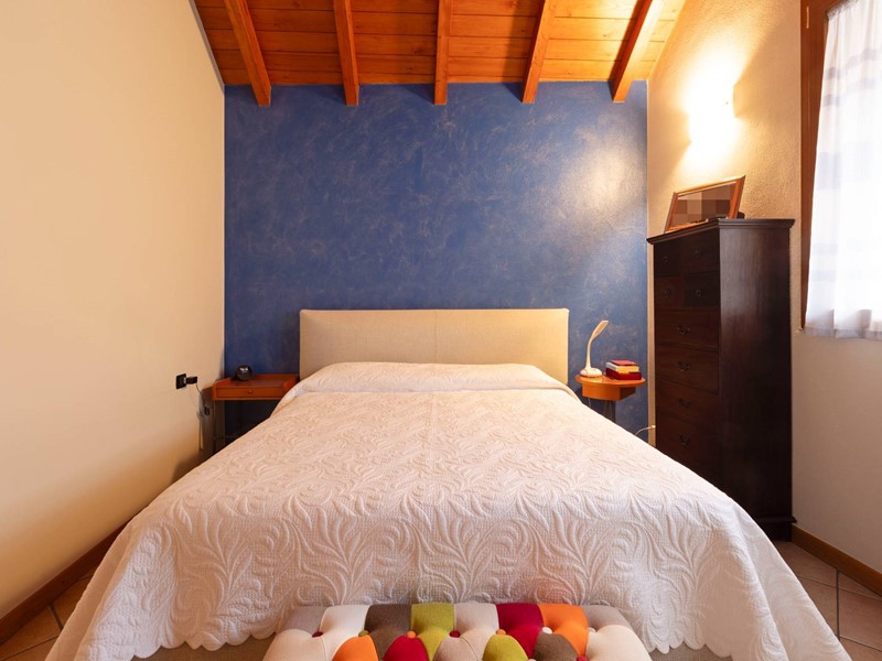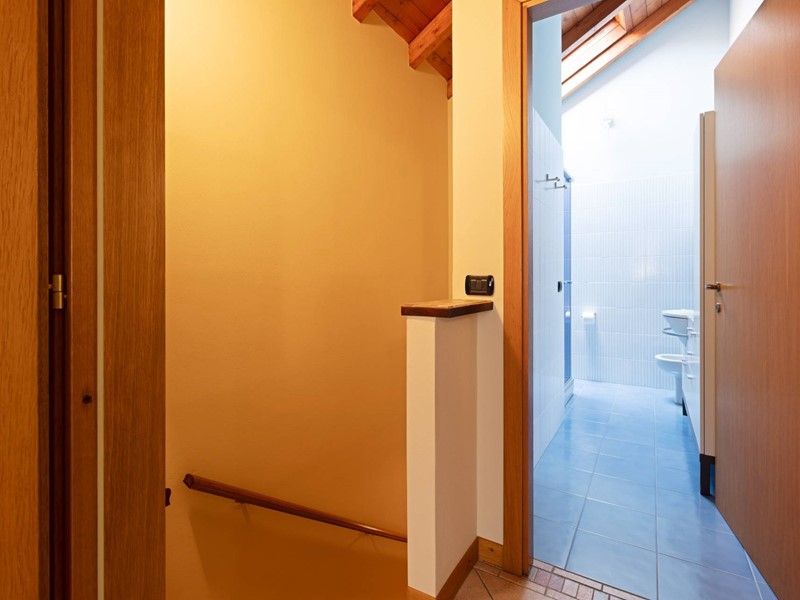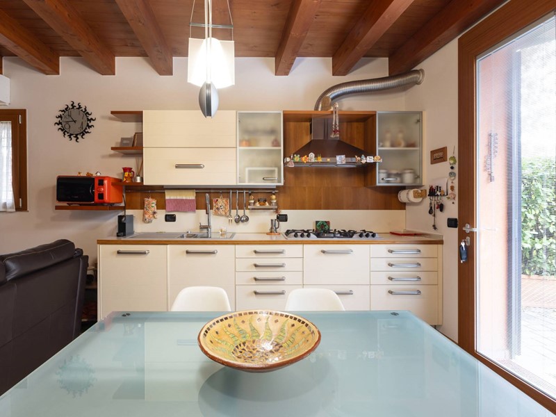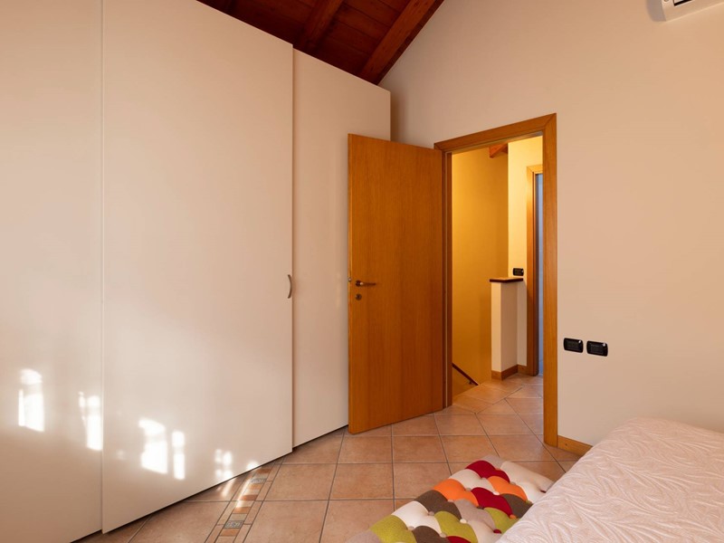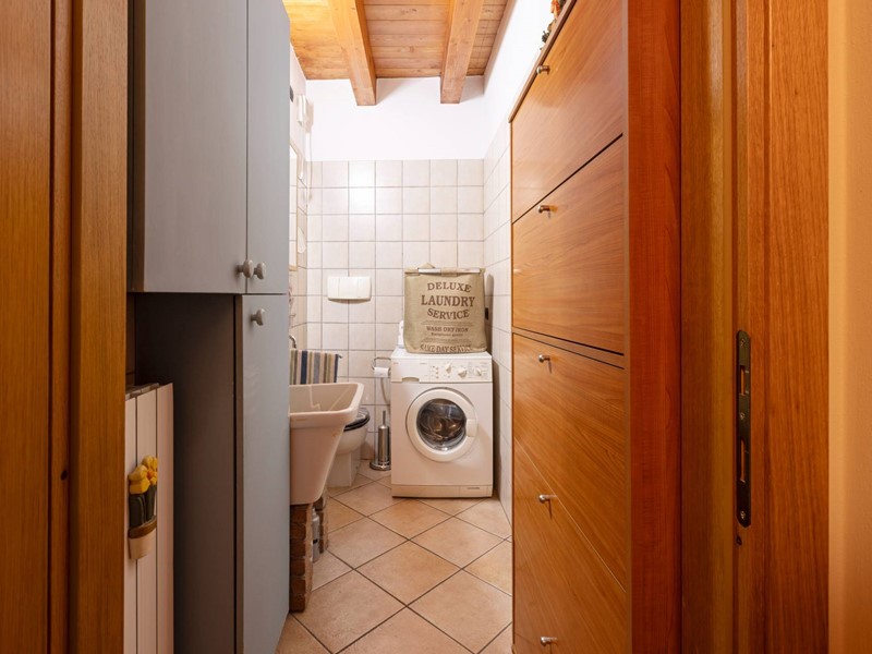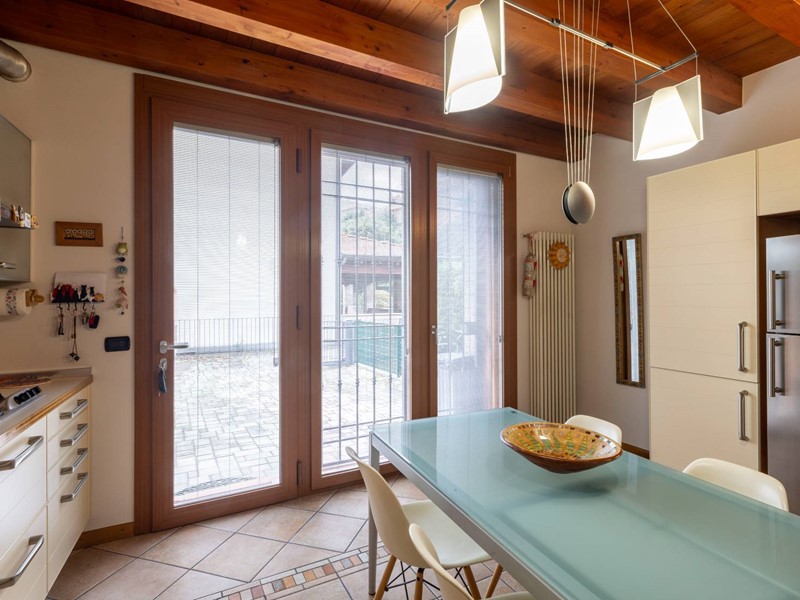 Al piano terra troviamo un ingresso accogliente, cucina a vista ben organizzata, un utilissimo ripostiglio nascosto da una porta a filo muro, e un bagno di servizio. Lambiente risulta luminoso grazie allampia finestra con tenda incorporata nella vetrocamera, che illumina tutto lambiente; tramite scala interna si accede al piano superiore dove si sviluppa la zona notte caratterizzata da alti soffitti con travi a vista, due camere da letto spaziose e luminose di cui una matrimoniale e una singola, e bagno padronale con doccia.