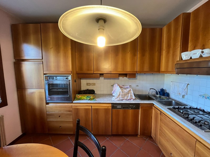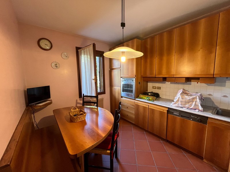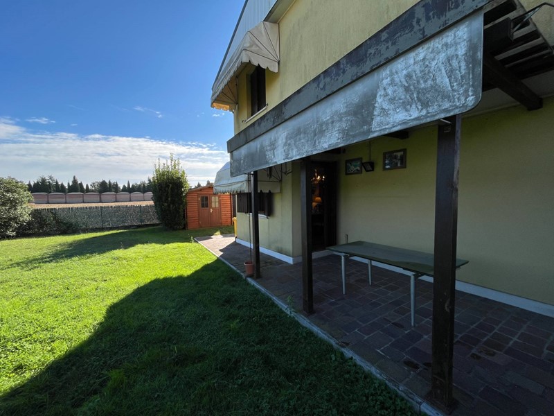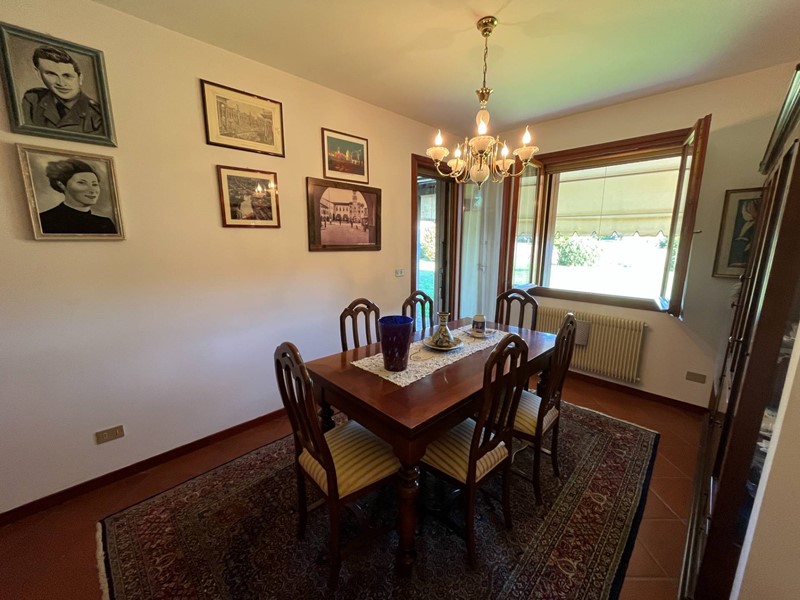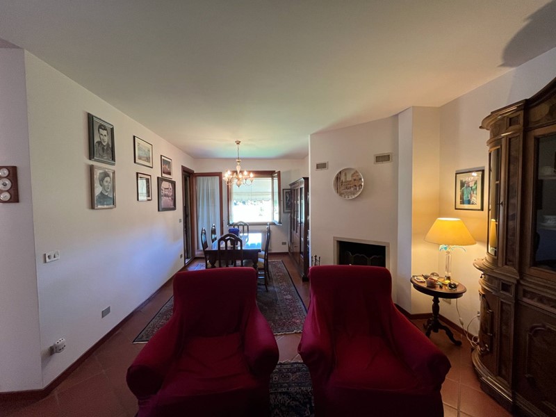 Lingresso al piano terra conduce a un soggiorno spazioso e luminoso, con caminetto a vista, ambiente ideale per momenti conviviali e relax. La cucina è separata e abitabile, perfetta per chi ama cucinare in un ambiente funzionale e accogliente. Dalla zona giorno si accede direttamente al giardino, con due casette in legno comode per riporre le attrezzature, biciclette ecc.... Una pompeiana permette di avere un posto auto ulteriore coperto esterno.