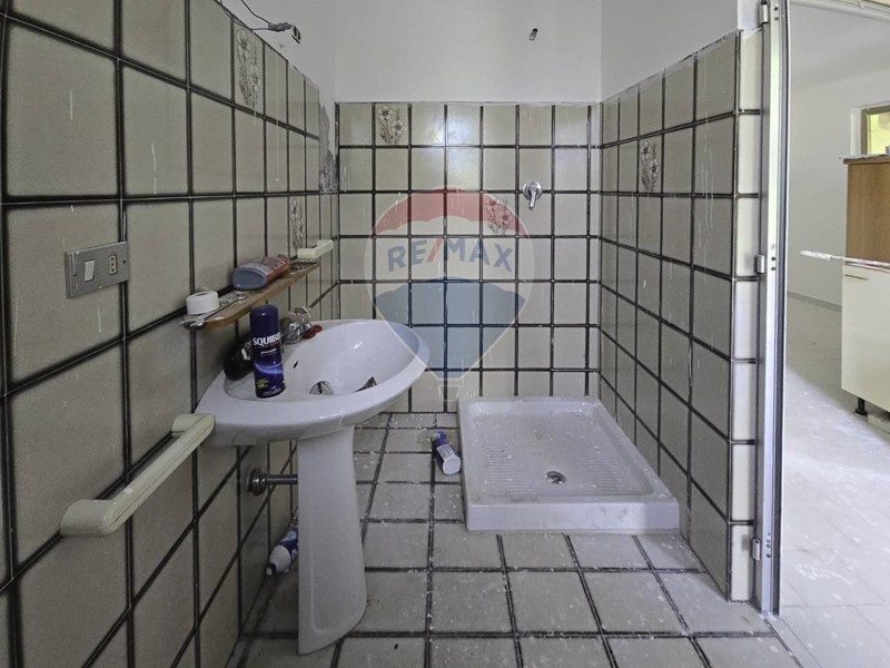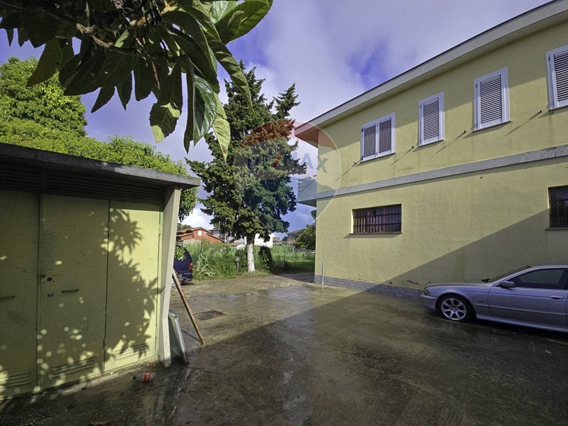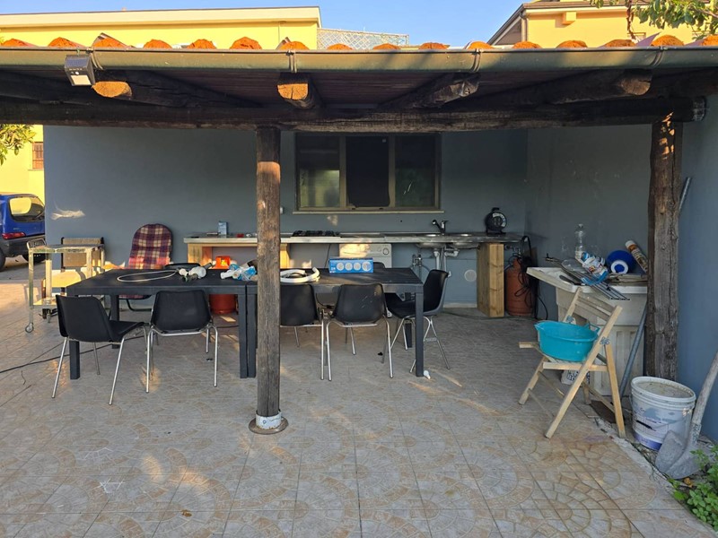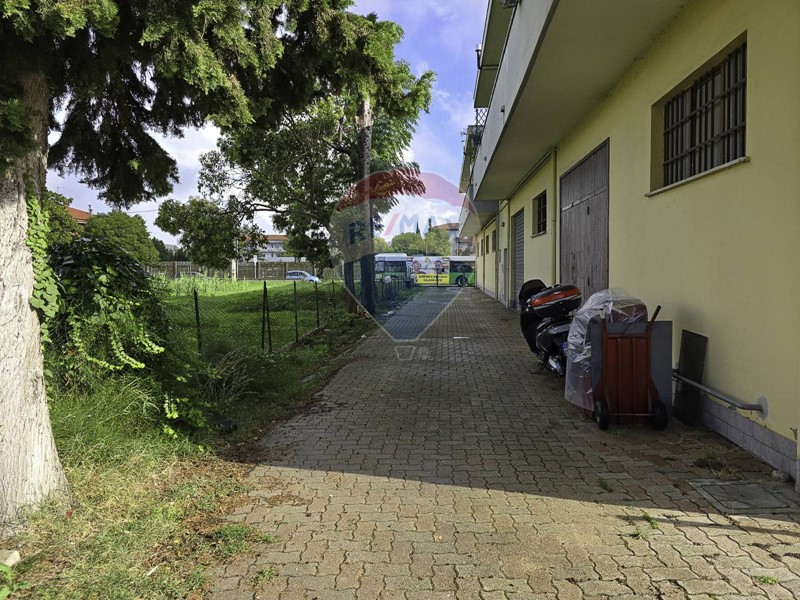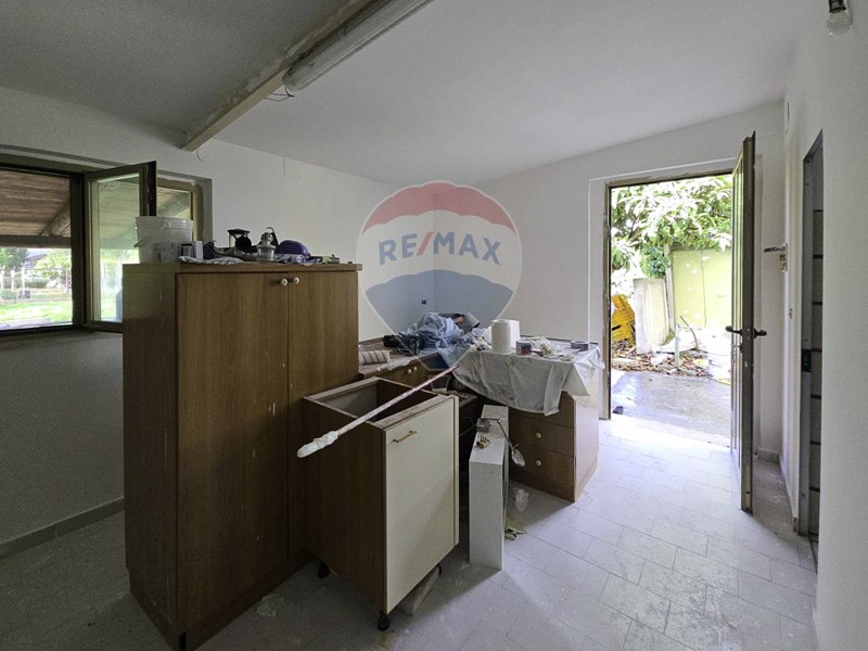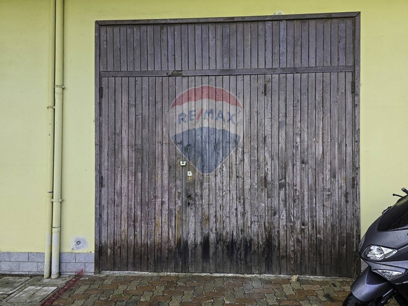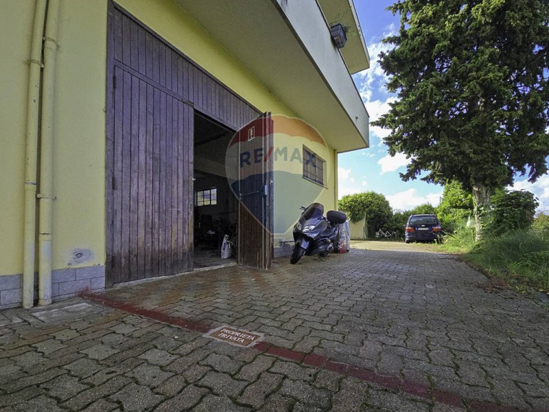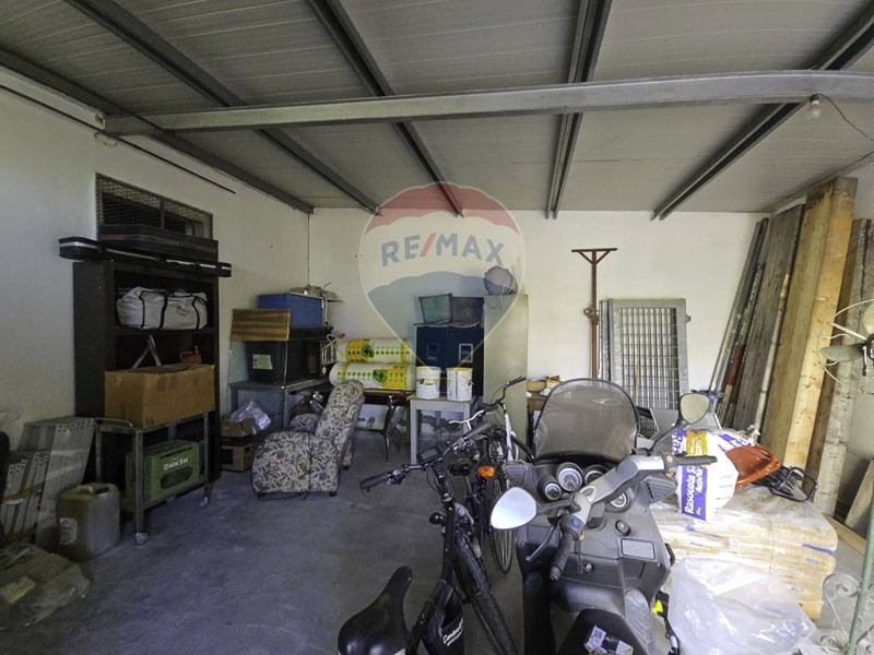 Al piano terra si trova anche unautorimessa di 49 mq, che comprende un vano, un ripostiglio, un WC e un portico. Un'area di circa 10 mq è occupata da una cabina Enel, per cui E-Distribuzione S.p.A. paga un affitto mensile al proprietario attuale.