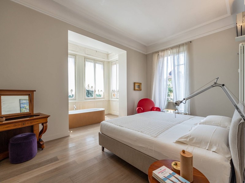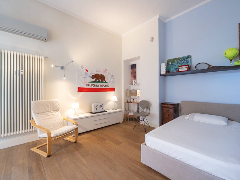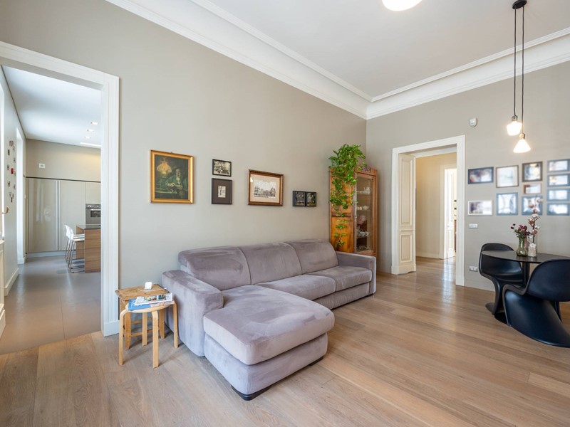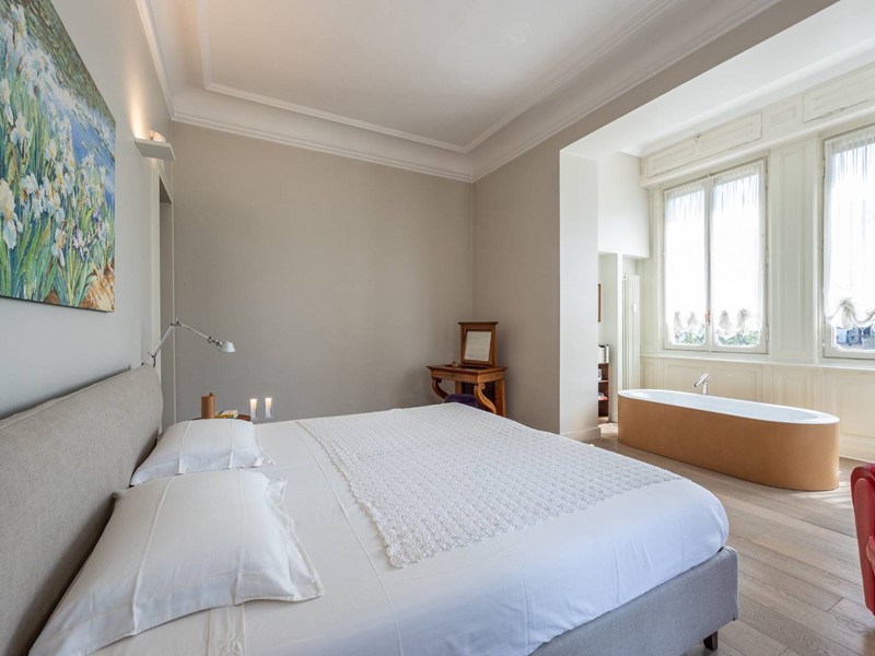 In splendido stabile d'epoca, in Via Lamarmora, nel tratto compreso tra Via Valeggio e Via Governolo, esclusivo appartamento al terzo piano con ascensore completamente ristrutturato composto da ingresso, luminosissimo salone doppio con bow window, cucina abitabile con isola e zona pranzo, tre camere molto ampie di cui una attualmente adibita a studio, una doppia con zona notte, cabina armadio e bagno privato e suite matrimoniale con bow window e vasca di design a vista, zona armadi, cabina armadio e bagno privato, terzo bagno ospiti tre bagni, lavanderia e ripostiglio e appendiabiti. Completa la proprietà una cantina e una soffitta. Categoria Catastale A/2.