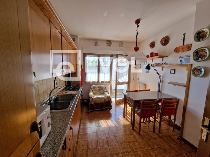 La cucina abitabile occupa una stanza separata, ma attigua al soggiorno, è dotata anche di piccolo spolert a legna in grado di offrire un'alternativa al sistema di riscaldamento a metano.