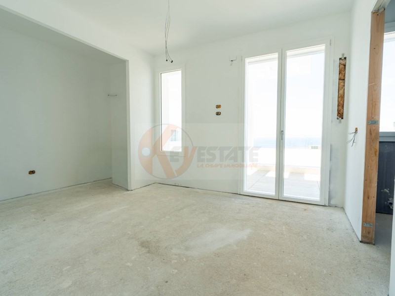 La zona giorno ti accoglie in un ambiente luminoso e ben distribuito, dove la sala si distingue con eleganza dalla cucina, mantenendo però un dialogo continuo con lesterno. La grande vetrata scorrevole ti guida verso un terrazzo abitabile, perfetto per i tuoi momenti allaria aperta. Da qui, una scala comoda conduce al piano superiore: una terrazza privata di oltre 40 mq con una vista mare da togliere il fiato.