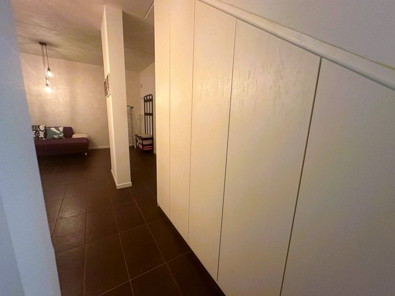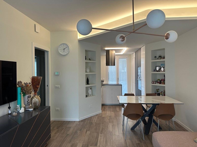 Lingresso conduce a una luminosa zona living con cucina a vista, ambiente accogliente e funzionale, ideale per vivere momenti conviviali in unatmosfera moderna e raffinata.