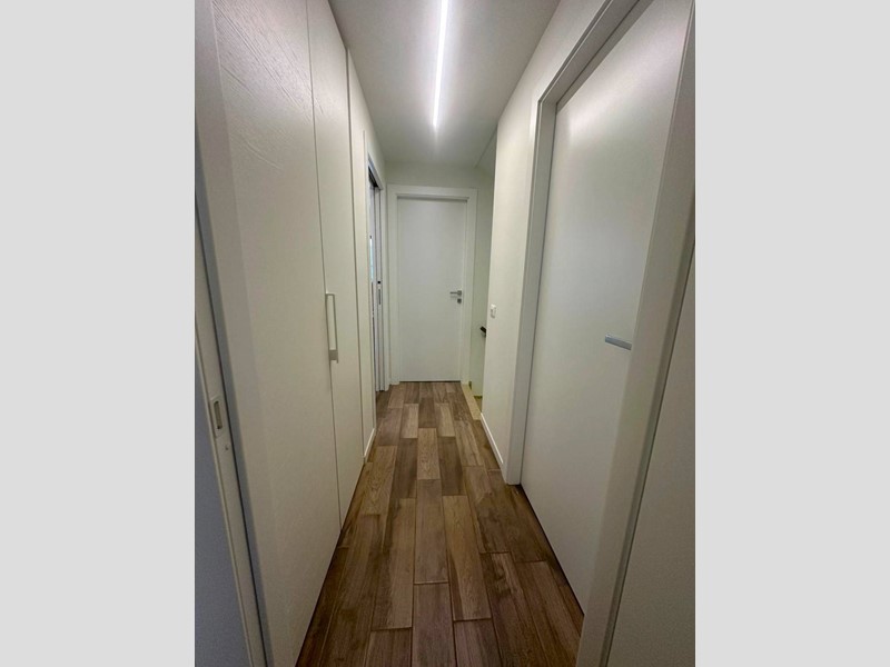 Un disimpegno introduce la zona notte, composta da due camere da letto e da un bagno finemente rifinito, dove cura dei dettagli e materiali di qualità definiscono uneleganza sobria e attuale.