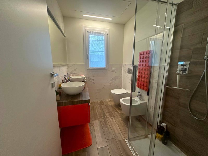 Portoncino blindato, infissi in alluminio con vetro camera basso emissivo, tapparelle avvolgibili motorizzate, zanzariere, riscaldamento a pavimento, VMC, aria condizionata e antifurto.