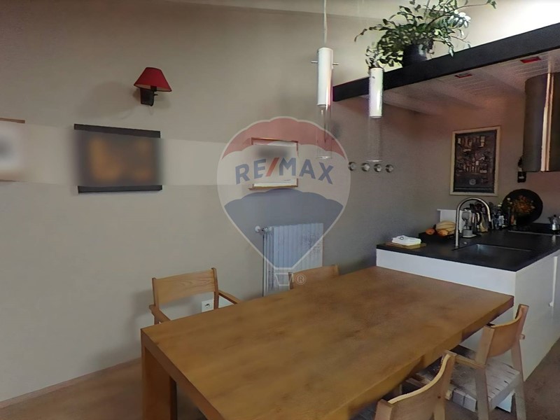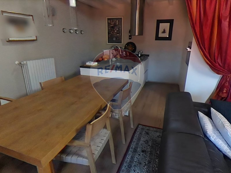 Labitazione si distingue per il suo fascino caldo e moderno, grazie alle travi a vista in legno sbiancato che donano carattere e luminosità agli ambienti.