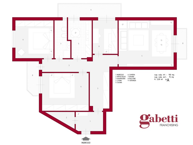 L'immobile, di circa 100 mq, si presenta in buone condizioni interne ed è caratterizzato da una luminosità naturale che avvolge tutti gli ambienti. La disposizione attuale prevede un ampio e arioso salone living, una cucina, tre camere da letto e un bagno. La presenza di tramezzi rende semplice una eventuale ridistribuzione degli spazi, adattandoli a nuove esigenze abitative.