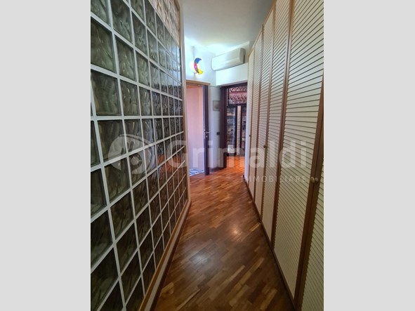 L'appartamento si trova all'interno di uno stabile di edilizia privata in cemento armato, dotato di ascensore e servizio di portineria per garantire comfort e sicurezza ai suoi abitanti. L'ingresso condominiale accoglie gli ospiti in un ambiente curato e ben tenuto, mentre l'appartamento stesso si compone di un ampio salone con cucina a vista, due camere da letto, due bagni e un pratico ripostiglio.
