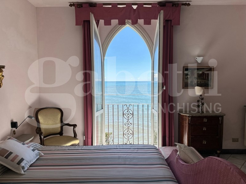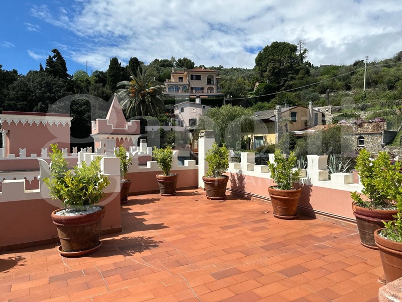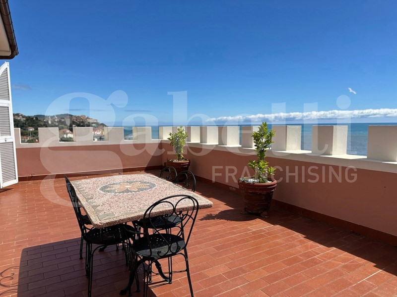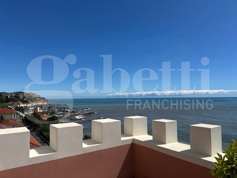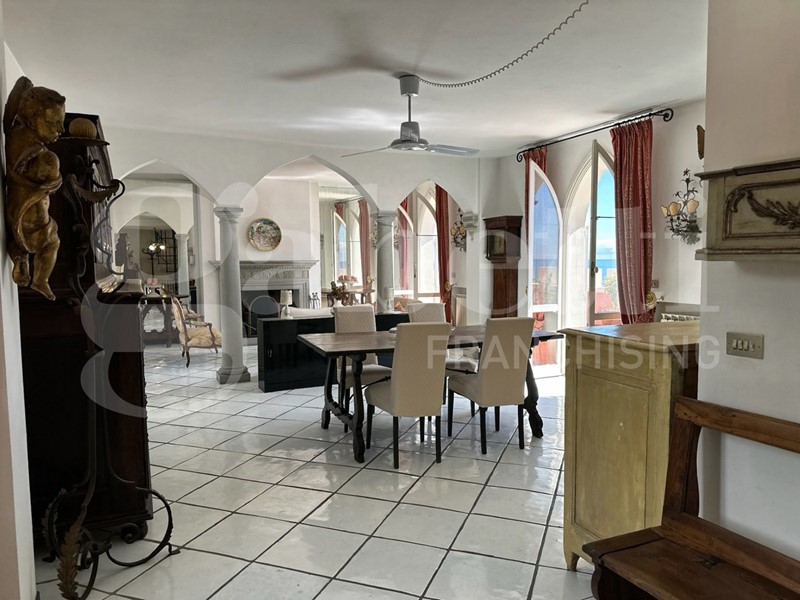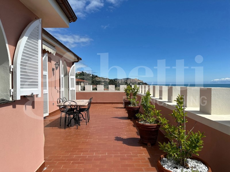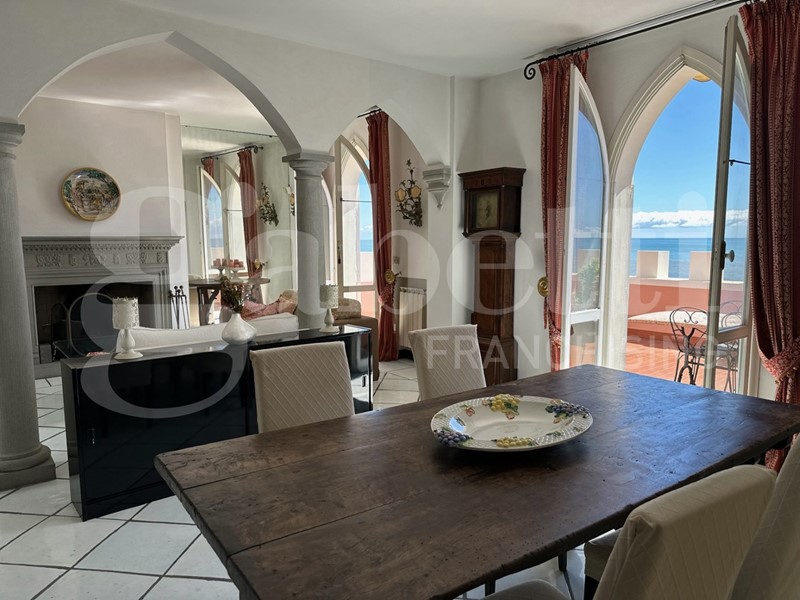 Nell' affascinante Riviera di Ponente, proponiamo in vendita un super attico unico nel suo genere, situato nella prestigiosa e storica Villa Ludovici. L'immobile, di ampia metratura, è disposto su più livelli e gode di una vista imprendibile a picco sul mare, in un contesto riservato e signorile. Al primo livello l'ingresso con disimpegno, tre camere da letto, e un bagno con balcone. Al piano superiore un grande ambiente open space dove è situato il salone triplo con camino, caratterizzato da luminosità, oltre al secondo bagno e alla cucina abitabile con una splendida vista panoramica, tutto il piano è circondato da un ampio terrazzo fronte mare, ideale per pranzi all'aperto con barbecue e forno pizza e momenti di relax, affacciato sulla meravigliosa costa ligure. Completa la proprietà la mansarda, dove troviamo una quarta camera da letto, due locali adibiti a salottino e deposito, oltre a un terzo bagno. Un attico raro, che unisce prestigio, privacy e una vista mare mozzafiato. Ideale per chi cerca un'abitazione di charme o una residenza esclusiva per le vacanze.