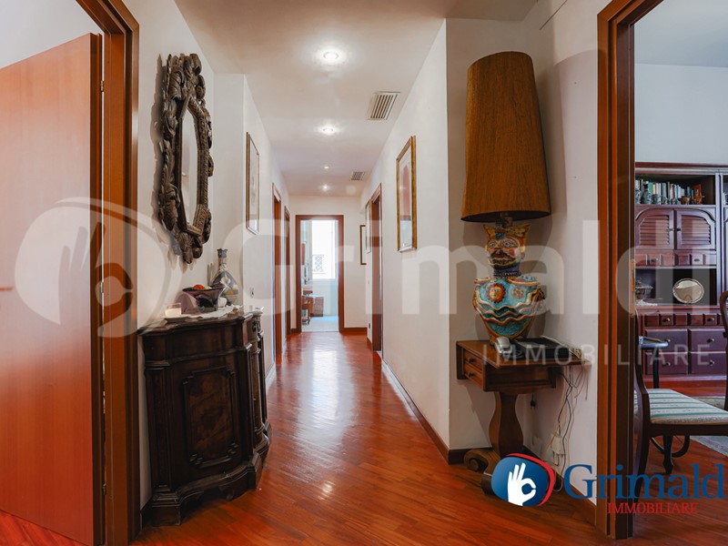 ?L'immobile è sito al secondo piano e si sviluppa su una superifcia catastale di circa 120 mq, si distingue per la sua eccezionale luminosità e per l'ottimale distribuzione degli spazi interni. Appena si entra, si è accolti da un lungo corridoio che divide l'appartamento a metà, dal quale si diramano tutti gli ambienti, creando un eccezionale riscontro di luce e di aria. Procedendo in senso orario, a sinistra troviamo il soggiorno e due camere da letto. L'ultima camera da letto, situata in fondo a sinistra, ha la peculiarità di avere un balcone angolare. Frontalmente, si trovano i due bagni e la cucina abitabile. A destra, sempre in senso orario, ci sono le altre due ampie camere da letto.