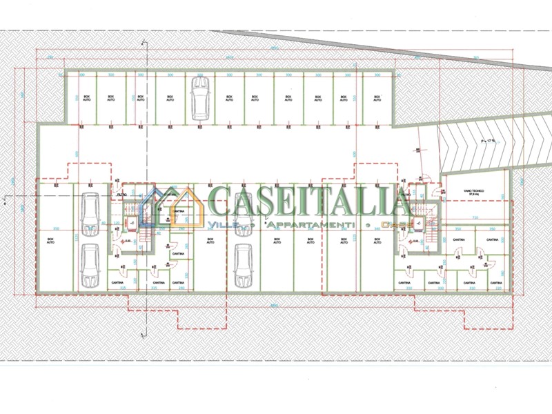 L'accesso ai box auto di diverse metrature e alle cantine si trova al piano interrato, tramite rampa esterna e scala interna.