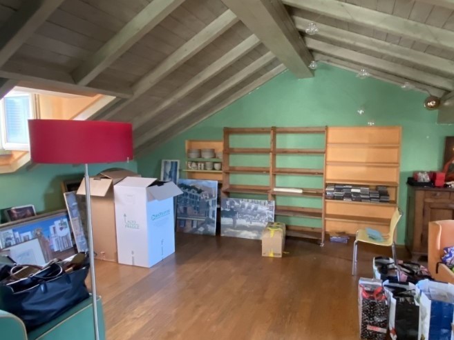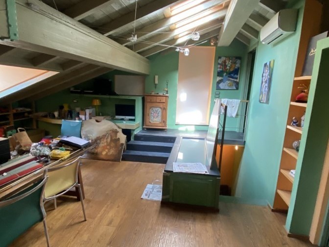 Intera piena proprietà dell’appartamento ubicato a Genova (GE) - Salita San Gerolamo civ. 5, scala B, interno 6, piano 5. Quota dell'intero di appartamento mansardato posto all'ultimo piano del condominio di Via San Gerolamo 5, composto da vano giorno open space, cucina, bagno e piccolo terrazzino in abbaino.