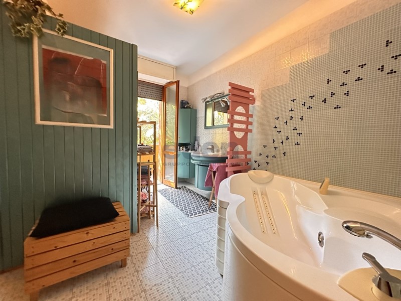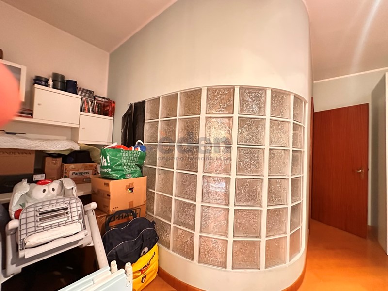 Piano secondo: ingresso che si apre su ampia zona giorno luminosa e versatile, cucina abitabile, seconda zona living più raccolta. Una porta nascosta conduce alla camera padronale con anticamera studio e allo spazioso bagno con doccia, idromassaggio, sauna e sanitari separati. Camera, bagno e zona living hanno accesso a un lungo balcone angolare.