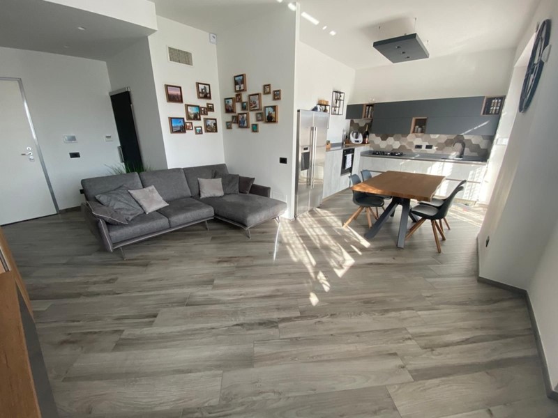 Ingresso living su ampio soggiorno con cucina abitabile a vista e affaccio su Strada Privata Nasi