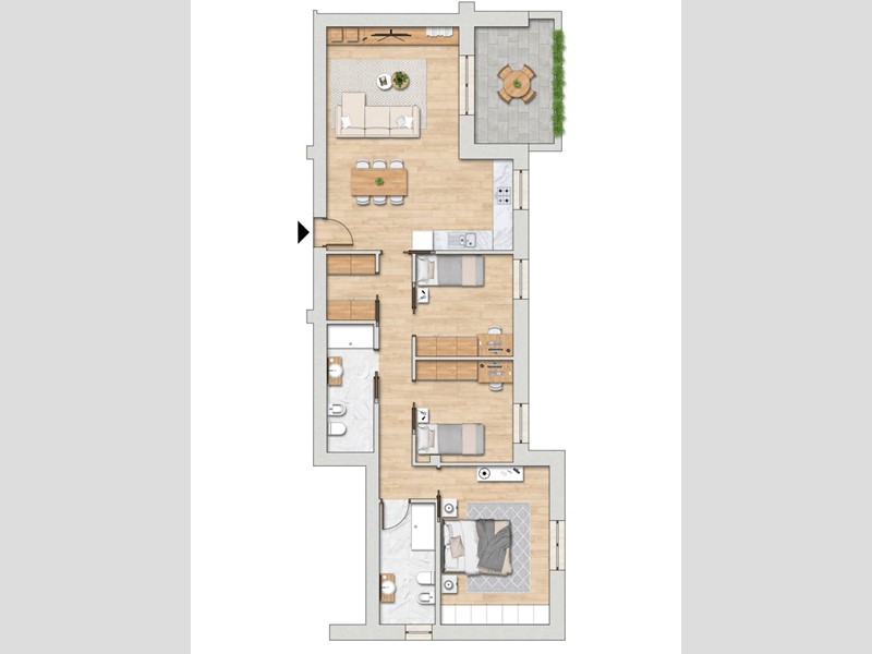 Possibilità di personalizzare gli ambienti, le rifiniture, i pavimenti e rivestimenti.