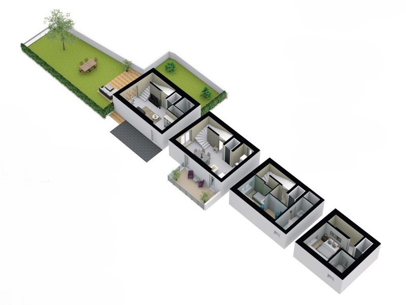 Completano la soluzione un ampio giardino costituito da una zona di servizio ed una zona verde, un ampio porticato al piano terreno ed un riservao terrazzo coperto al primo piano, oltre box doppio e cantina. Possibilità di realizzare un'ulteriore camera. L'appartamento è dotato di impianto domotico di ultima generazione, che garantisce un elevato livello di comfort, sicurezza ed efficienza energetica.