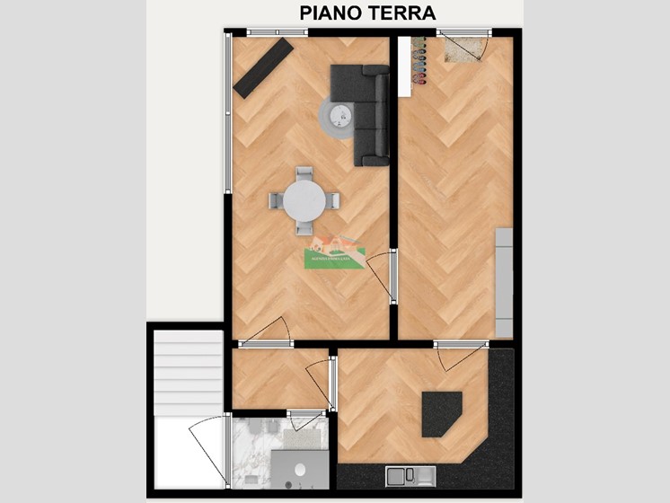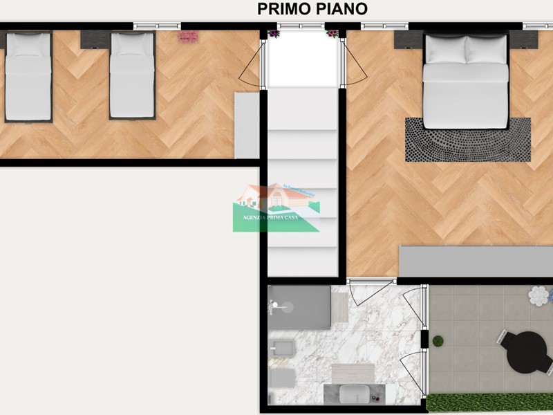 Appartamento da ristrutturare su due livelli piano terra e primo, composto da ingresso, ampia sala con angolo cottura, bagno con box doccia; al primo piano disimpegno notte due camere da letto matrimoniali, bagno finestrato, ampia terrazza.