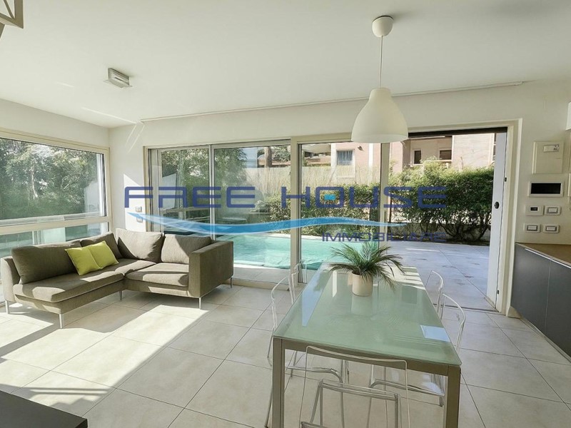 A Milano Marittima, a poca distanza dal mare e dal centro, disponiamo di meravigliosa residenza di prestigio composta da ampio giardino attrezzato con piscina. L'ingresso si apre su un soggiorno caratterizzato da ampie vetrate che affacciano sul giardino e angolo cottura completo di elettrodomestici. Al piano terra si trova inoltre una camera matrimoniale con accesso diretto al giardino e un bagno finestrato con doccia, comodamente raggiungibile sia dalla zona giorno sia dalla camera da letto. Salendo al piano superiore troviamo due camere matrimoniali entrambe con balcone di cui una con cabina armadio oltre ad un secondo bagno finestrato con doccia; Dotato di garage al piano interrato e piccola lavanderia di servizio con accesso diretto alla proprietà. Posto auto esclusivo all'interno della corte. Aria condizionata, riscaldamento autonomo, finiture di pregio sia nell'arredamento che nella tipologia dei materiali costruttivi. Contratto transitorio 18 mesi, solo referenziati.