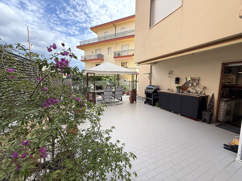 Ottimo appartamento trilocale a Sanremo, situato al primo piano con ascensore di stabile silenzioso a due passi dal mare e dalla pista ciclabile. Questo trilocale a Sanremo vicino al mare è composto da ingresso con disimpegno, soggiorno doppio con ampie finestre, cucina separata che si affaccia su una grande corte tutta a vivere, con cucina esterna e zona pranzo con patio. La zona notte ha due camere, una grande matrimoniale ed una più piccola, con ripostiglio/armadio, vi sono poi due bagni, uno dei quali con finestra. Completa la proprietà una cantina adatta per riporre le biciclette. La vista mare è molto bella, dal vivo vi assicuriamo che è molto meglio che in fotografia. Gli spazi sono ottimi sia per una famiglia residente che per vacanze. Il riscaldamento è centralizzato a gas con termovalvole. Parcheggio condominiale. Da vedere!
