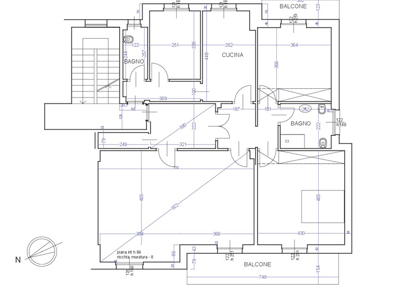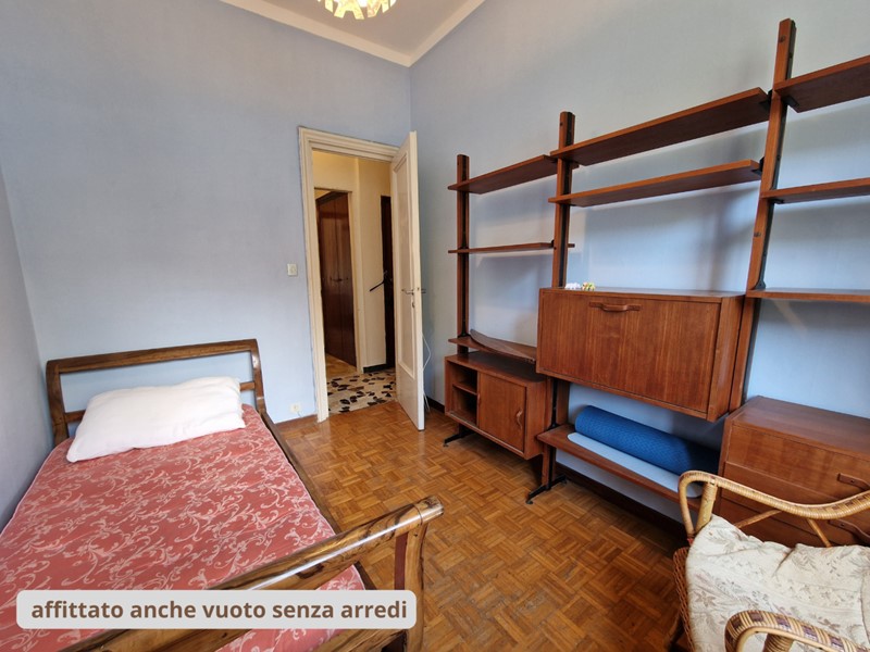 COMPOSIZIONE: Salone doppio con balconata, attualmente sala e terza matrimoniale, può tornare salone eliminando la parete a spese del locatore. 2 camere matrimoniali + una camera singola. Cucina, doppio bagno, ripostigli e 2 balconate.