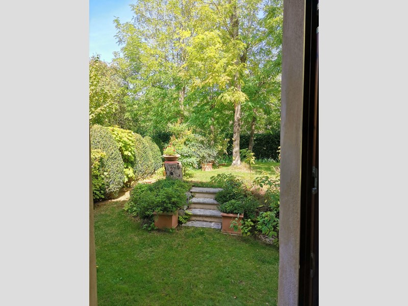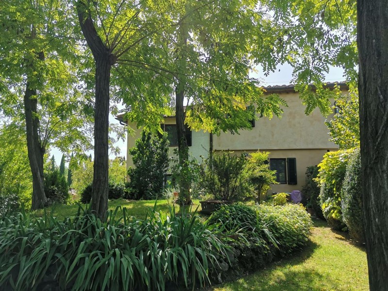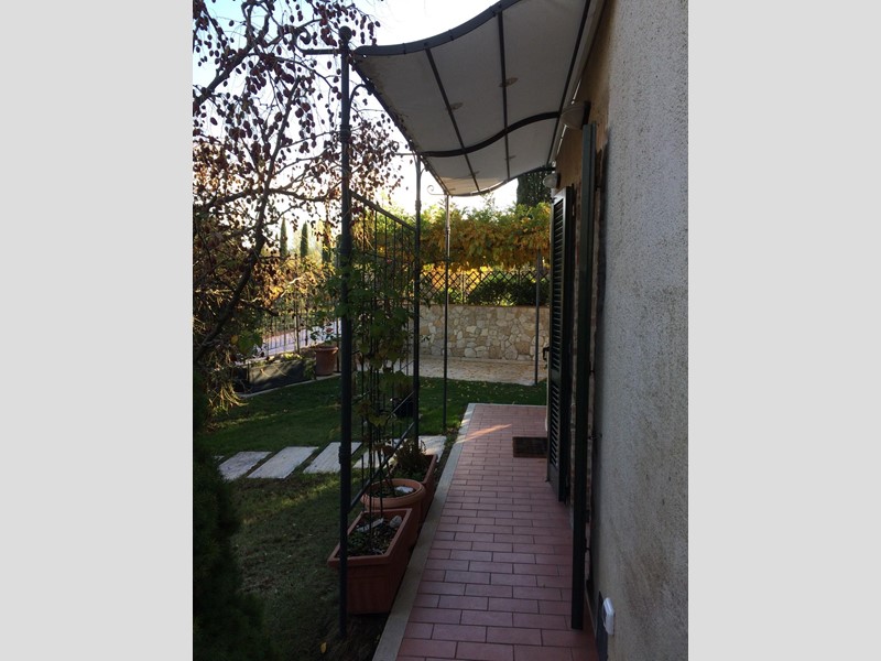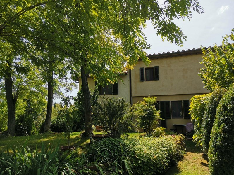 In campagna, tra Staggia e Castellina scalo, in casale di recente costruzione, composto da solo quattro unità indipendenti con viale di accesso e parcheggio interno., appartamento con ingresso indipendente libero su tre lati, di circa 130 mq. circondato da ampio giardino privato completamente recintato. L'immobile caratterizzato da volumi sfalsati si compone di: ingresso, cucina abitabile, soggiorno, bagno e ripostiglio al piano terra; disimpegno studio, camera doppia, camera matrimoniale con cabina armadio e bagno al primo piano. La proprietà si completa con l'ampio giardino recintato, con il gazebo e spazi resede adiacenti alla zona giorno, per complessivi 2300 mq. circa al cui interno troviamo anche il garage seminterrato di circa 40 mq. oltre al pozzo ed alla vasca di raccolta acque. Spazi ad uso parcheggio privato oltre ai posti auto nel piazzale condominiale. L'immobile è stato oggetto di ristrutturazione nel 2022 con inserimento di cappotto, nuovo tetto e caldaia a condensazione.