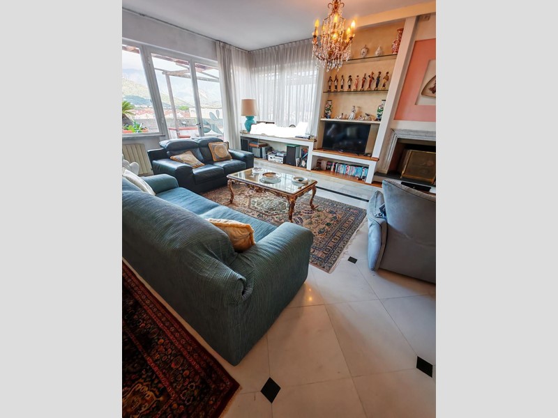 Questo attico, situato nell’elegante zona di Marina Di Carrara, offre una vista mozzafiato sui monti, sul Levante.