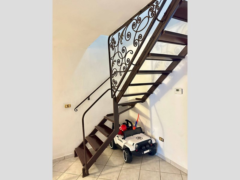 La soluzione è composta da: un vano scala indipendente che dà laccesso allingresso, soggiorno, tinello con angolo cottura in muratura, cucinotto, due bagni e camera matrimoniale caratterizzata da volte a stella con affaccio sul balcone antistante.