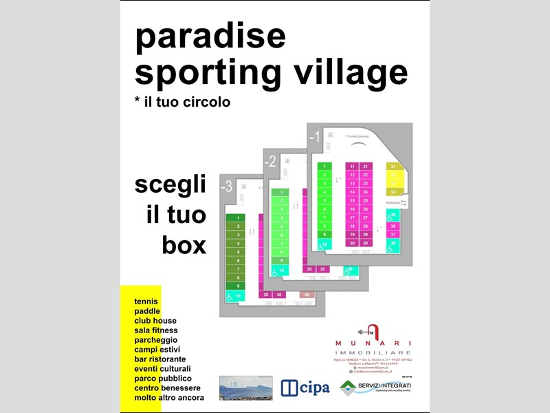 Via Aniello Falcone (Le Arcate) fittasi box auto di nuova realizzazione (a cura dell'impresa costruttrice CIPA S.p.A., azienda che, tra le innumerevoli opere costruite, ha realizzato il parcheggio Morelli) in struttura multipiano su 3 livelli interrati all'interno di un esclusivo circolo sportivo. I box hanno quadrature a partire dai 16 mq circa. Sono inoltre corredati di serranda elettrica nonché di punto acqua e di punto luce (possibilità di punto ricarica auto elettrica). L'intera autorimessa è servita da WIFI, videosorveglianza con registrazione H24 ripetitore del segnale dei cellulari in tutti i piani.
