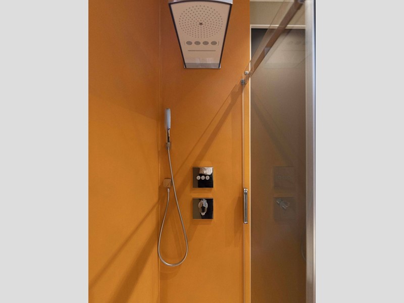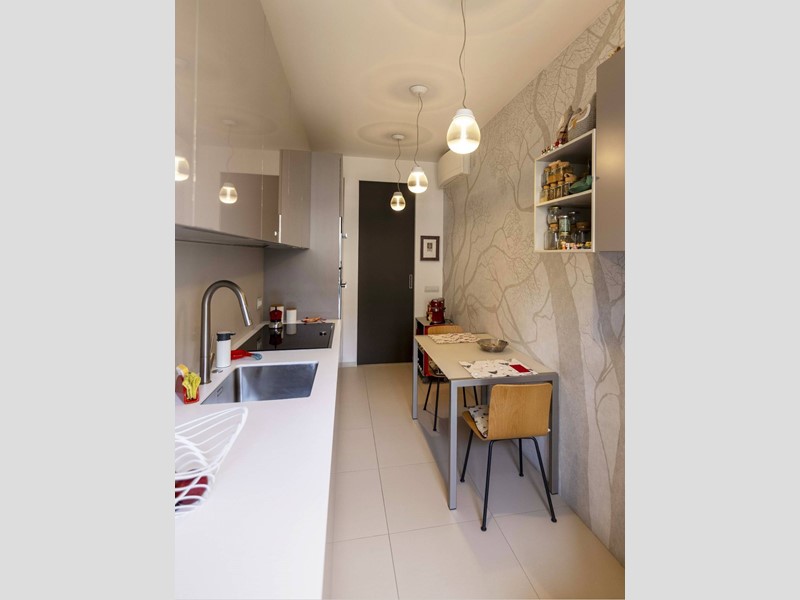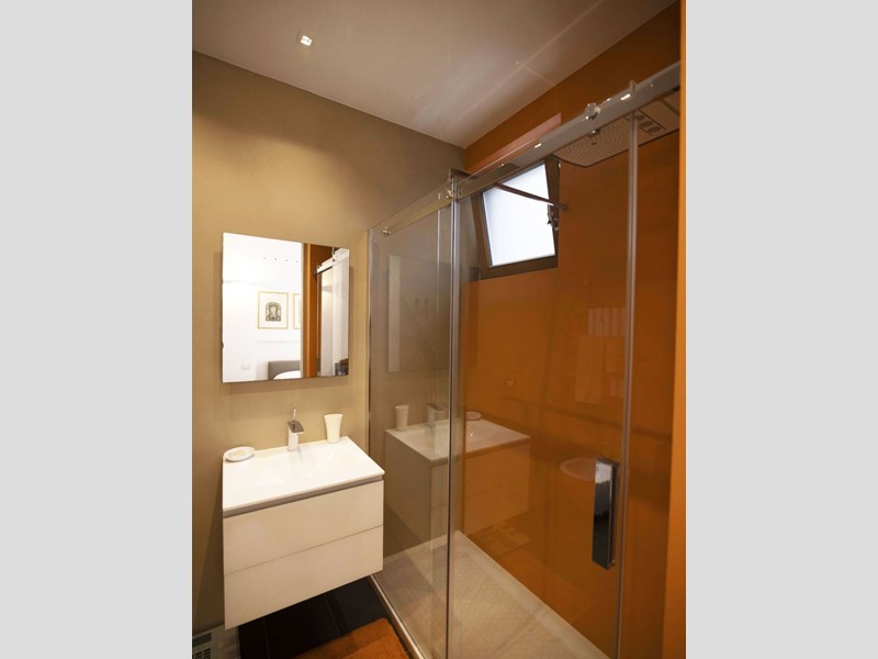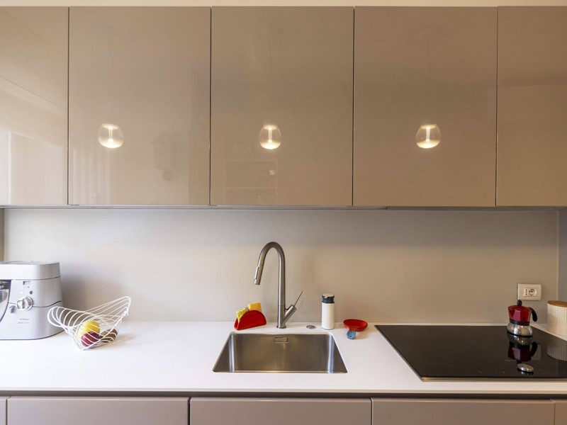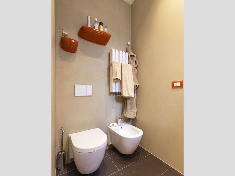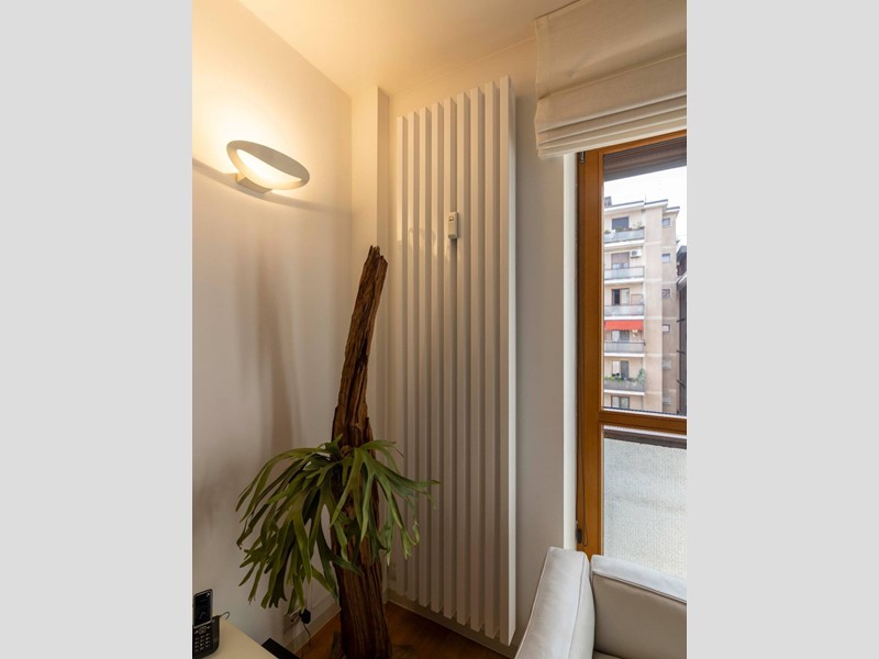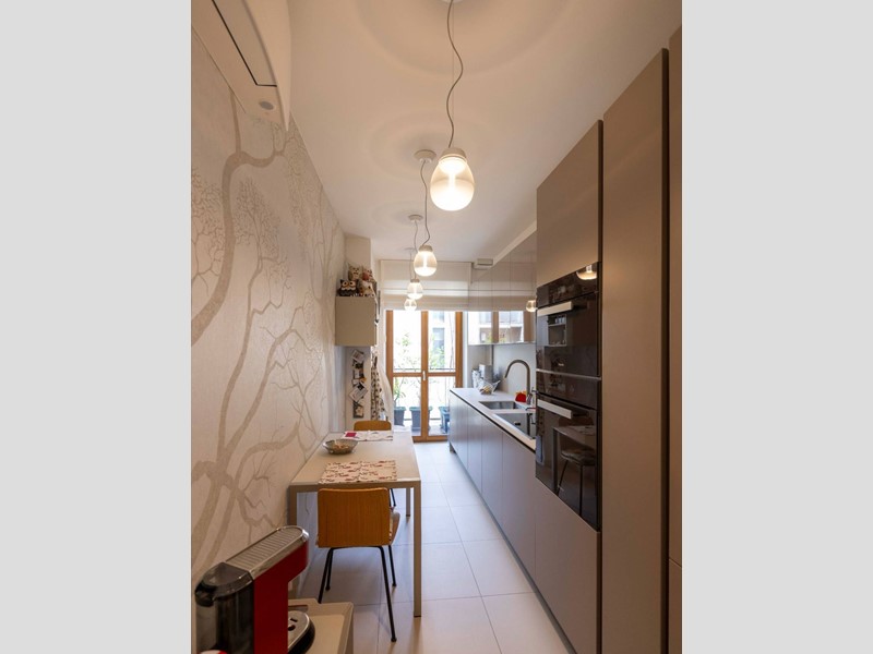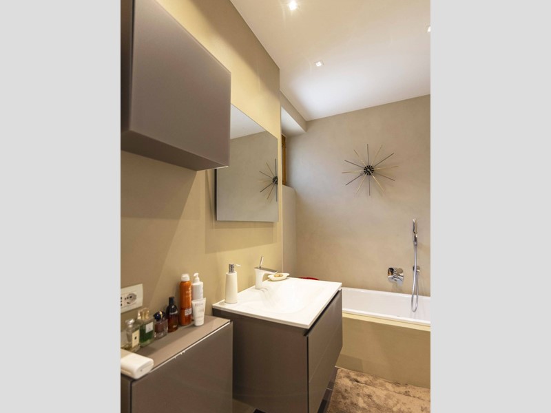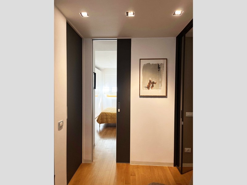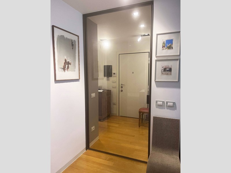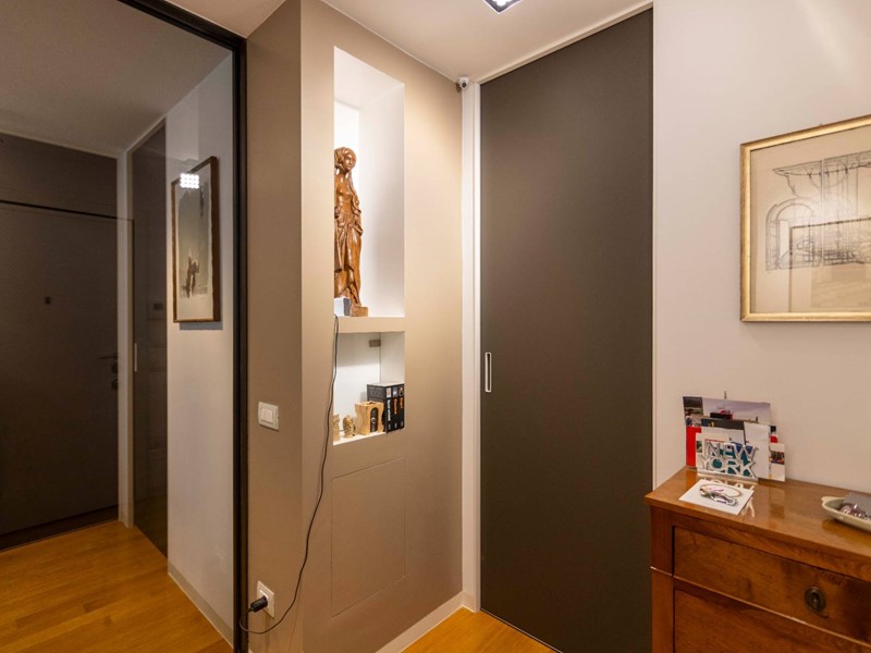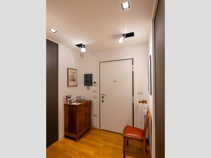 L'appartamento è moderno, elegante e con finiture di altissimo livello ovvero le porte Rimadesio scorrevoli su misura; il parquet ad olio mentre i bagni in resina, gli armadi illuminazione interna. L'illuminazione della casa a Iled dimmerabile e illuminazione Danese con telai rasati, serramenti in legno Alpi Fenster con vetrocamera e rostri aggiuntivi antieffrazione, sistema di allarme con radar e impianto di videosorveglianza interno. Tapparelle elettriche con azionamento anche centralizzato e zanzariere su tutti i serramenti. Caloriferi Tubes Soho e valvole termostatiche a bordo o remote; Tutto lappartamento inoltre è controsoffittato a differenti altezze facilitando eventuali aggiornamenti impiantistici.